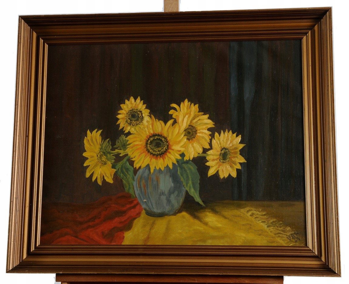 «Подсолнухи в вазе» красивой масляной живописи 1963 года !!!