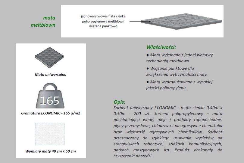 Универсальный сорбент - тонкий мат Экономический - 0,40 м x 0,50 м - 100 ПК. Неагрессивные химические вещества и наиболее агрессивные химические вещества. Sorbent предназначен для быстрого удаления утечек на рабочих станциях, маршрутах связи, машинных парках и т. Д. Сорбент в матах также является отличной альтернативой обычной очистке. Центрическая перфорация позволяет разделить мат. Коврик сделан в расплаве