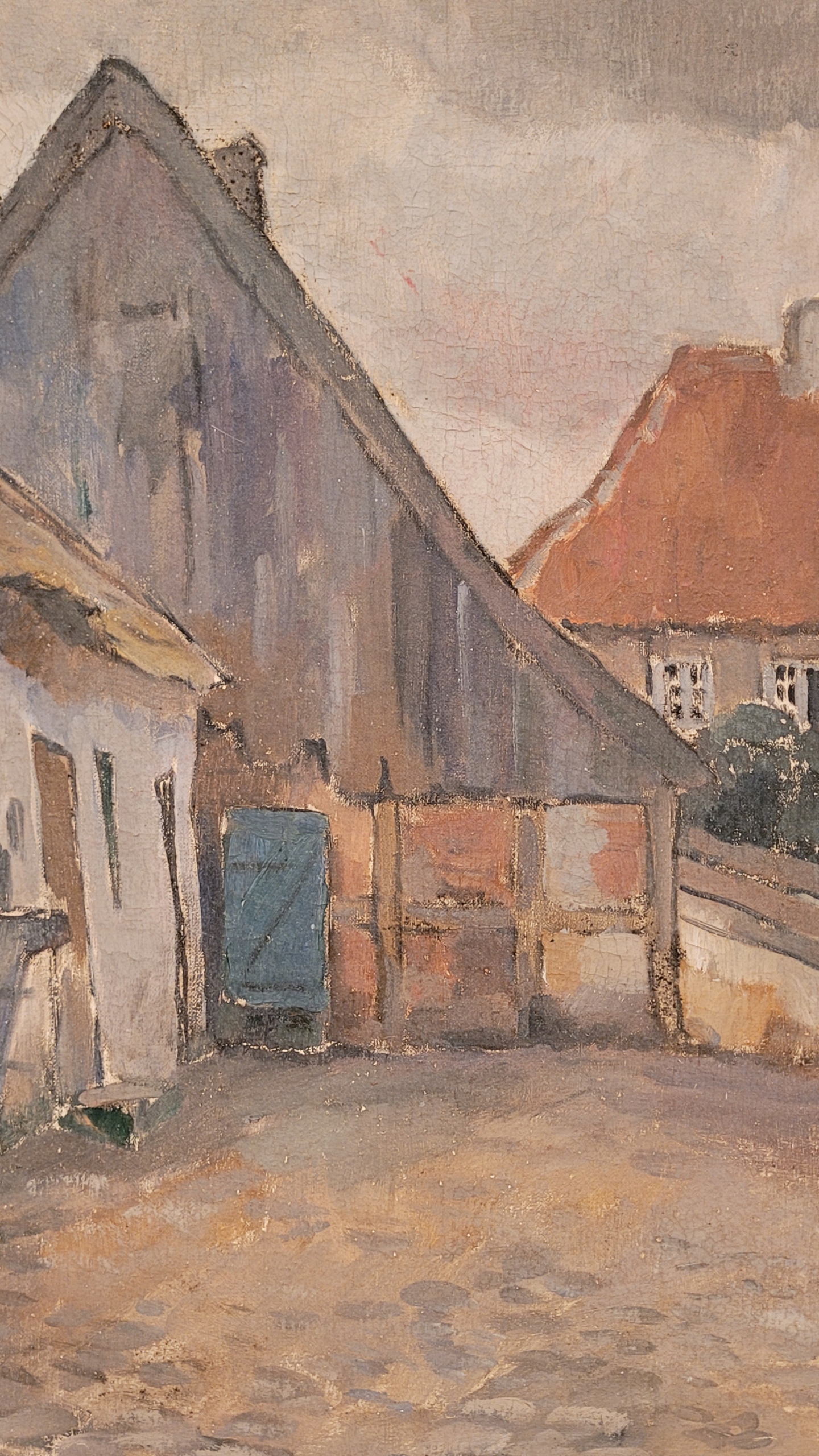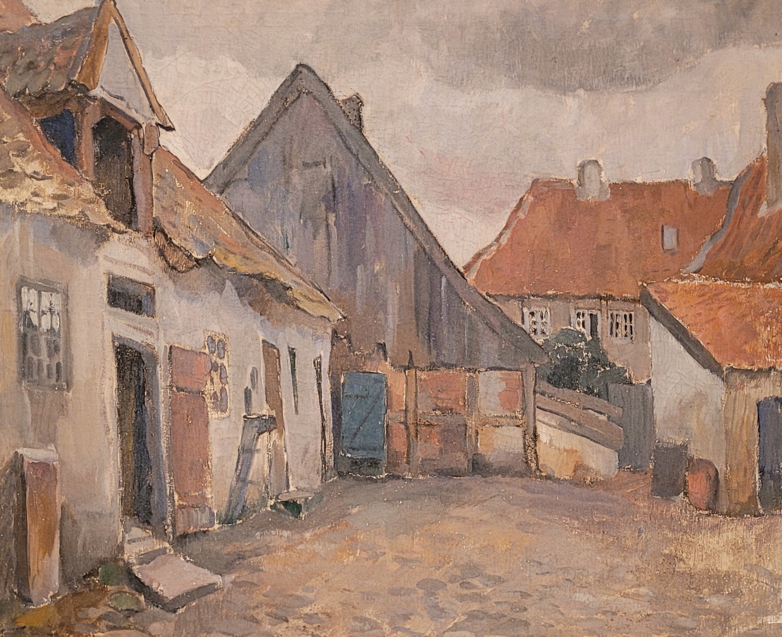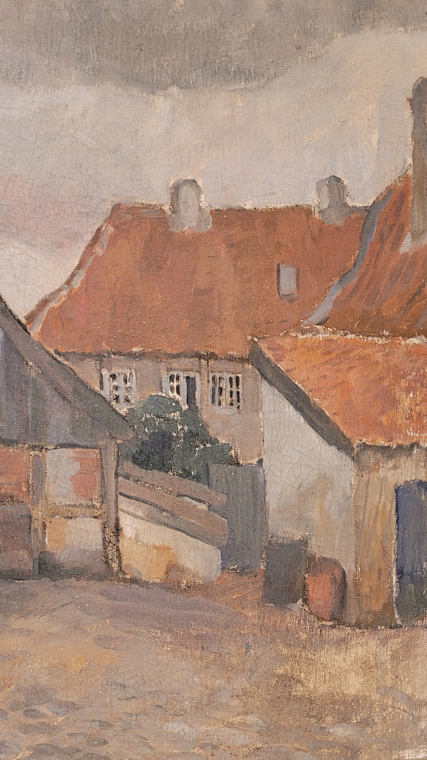 СОРЕН СОРЕНСЕН - "СТАРЫЙ ДВОР", прекрасная картина маслом - 1918 год.