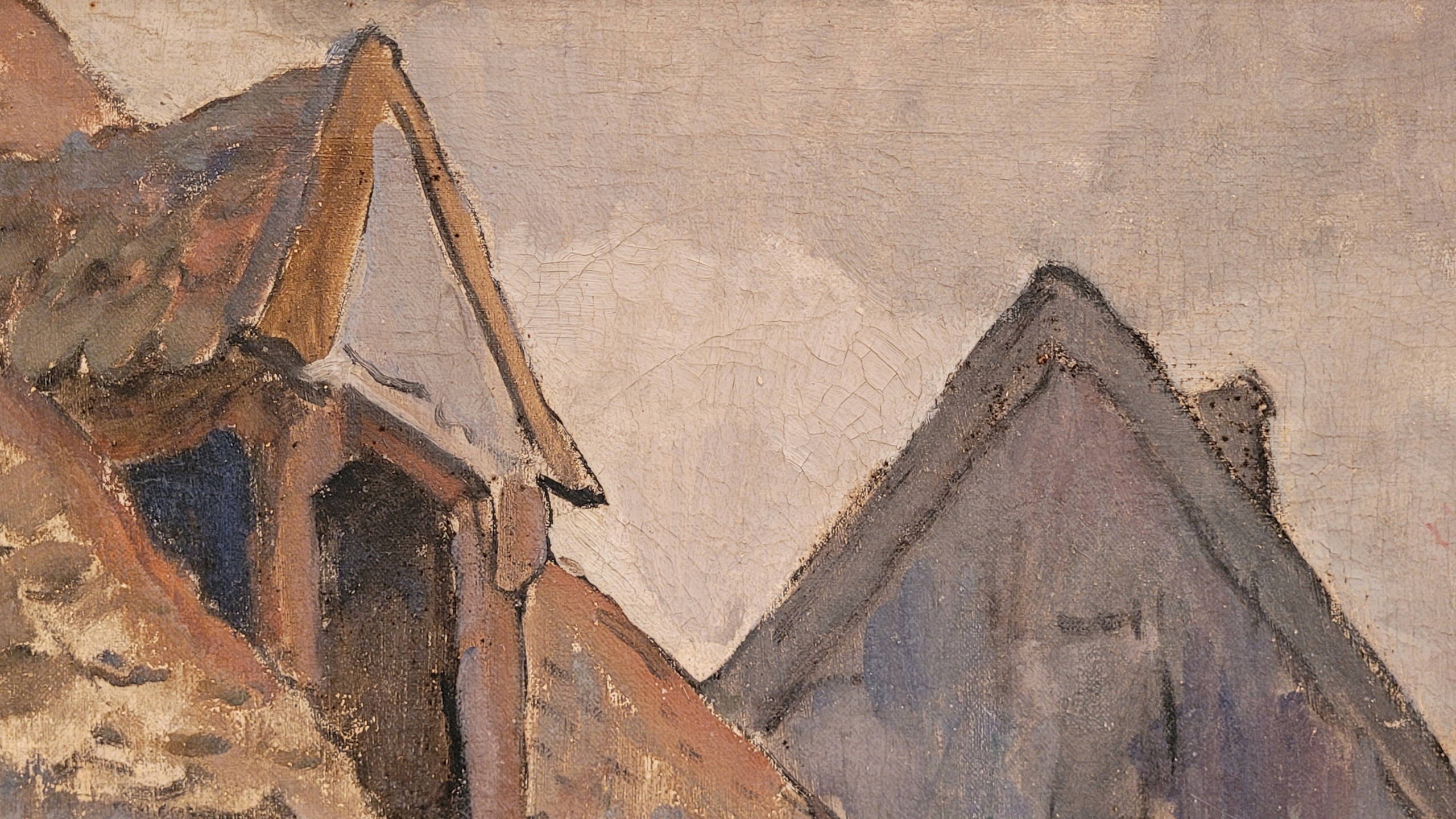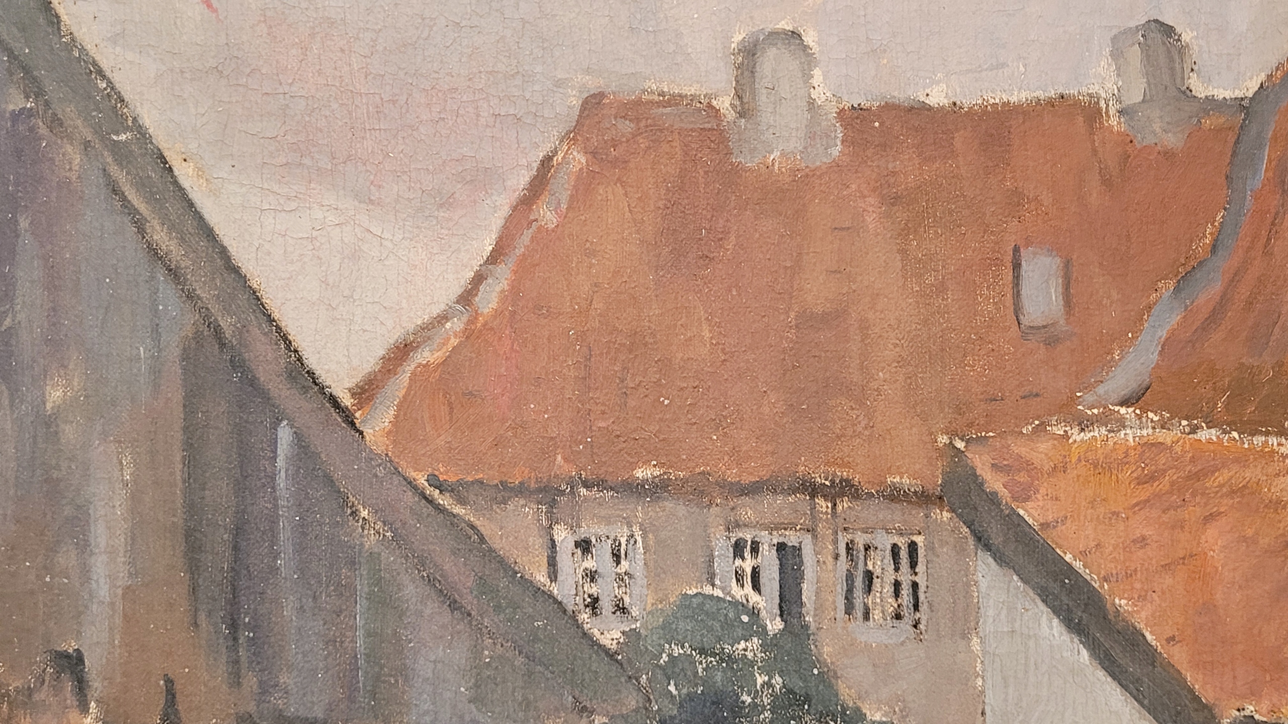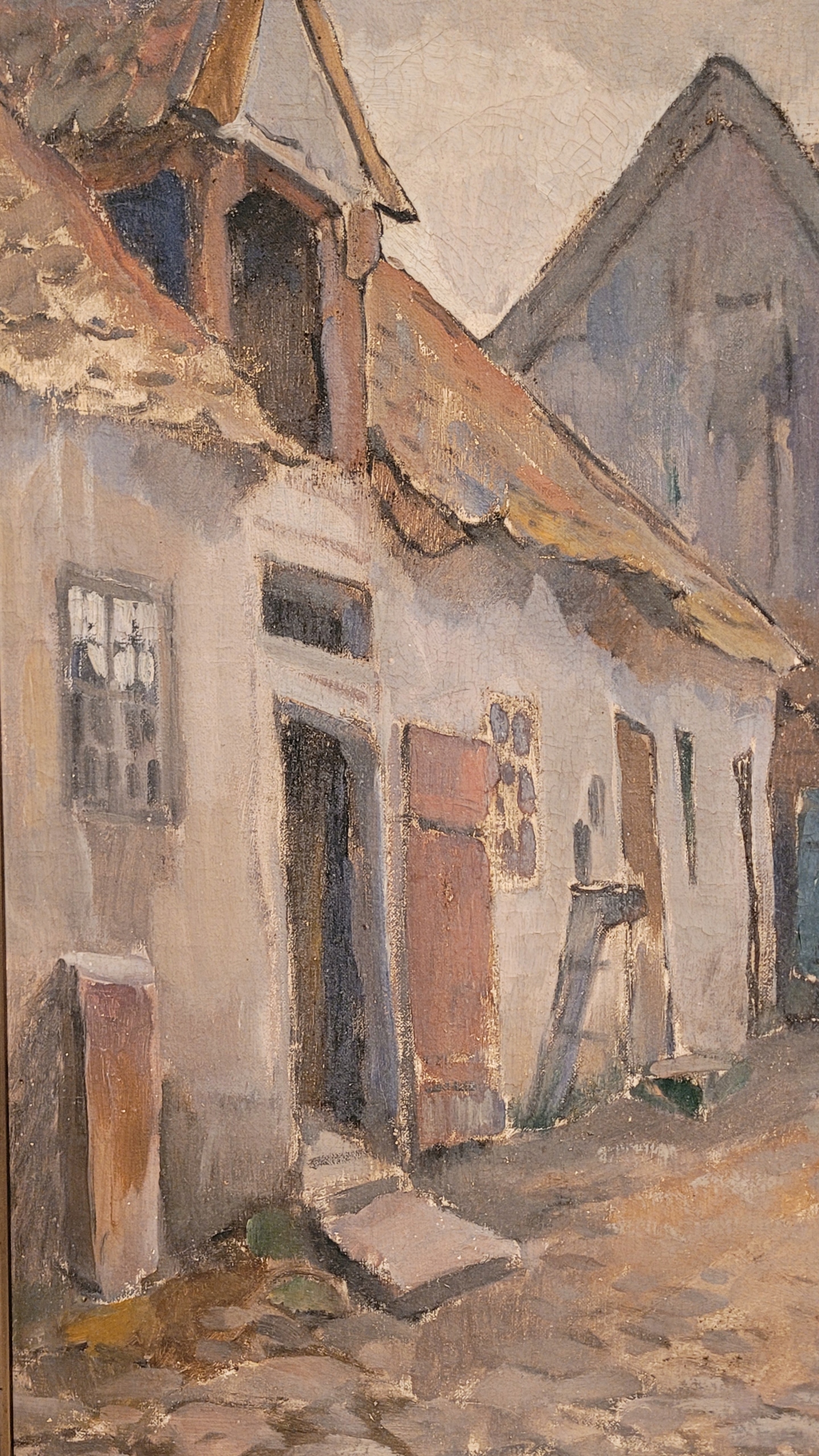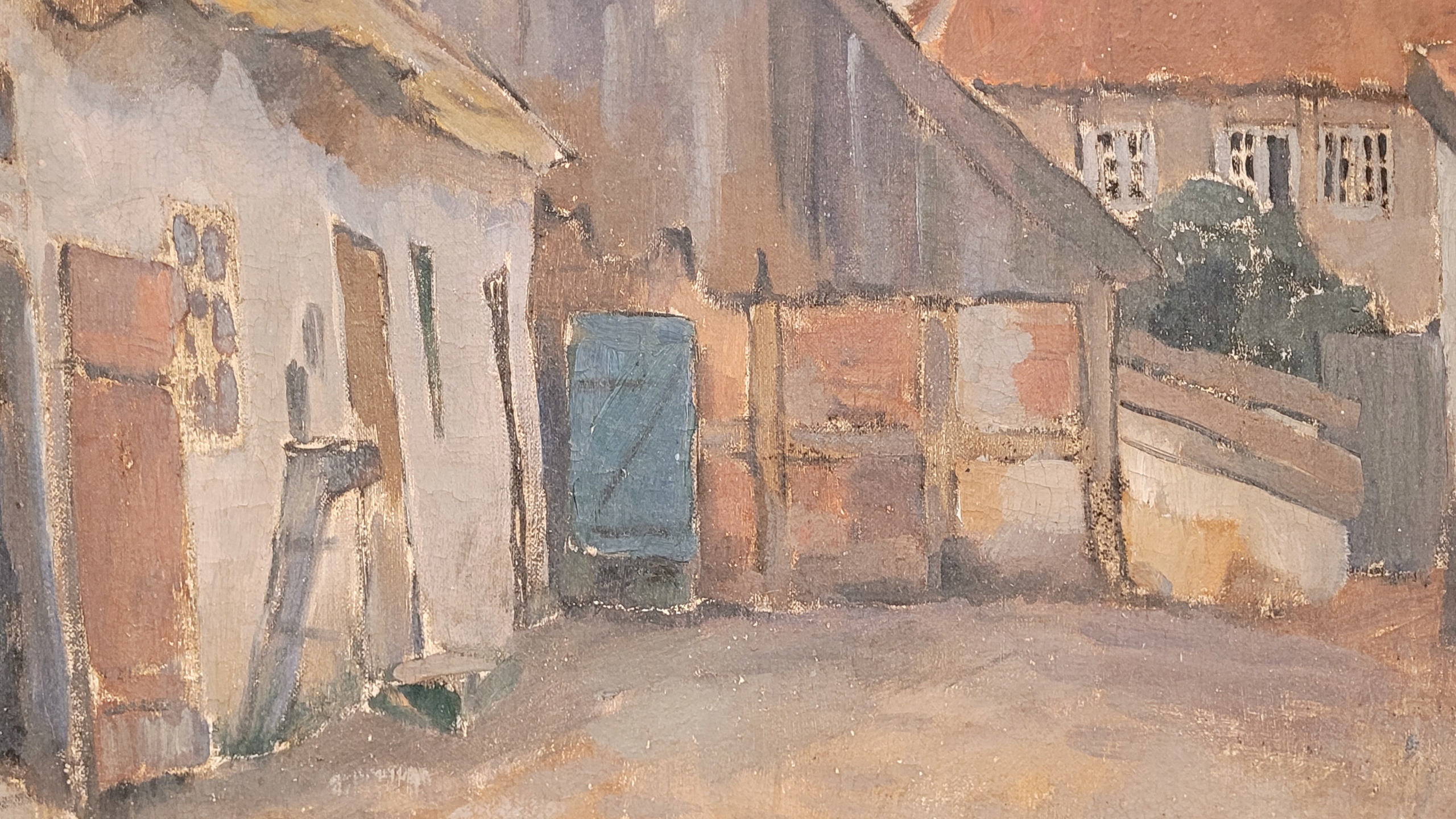 СОРЕН СОРЕНСЕН - "СТАРЫЙ ДВОР", прекрасная картина маслом - 1918 год.