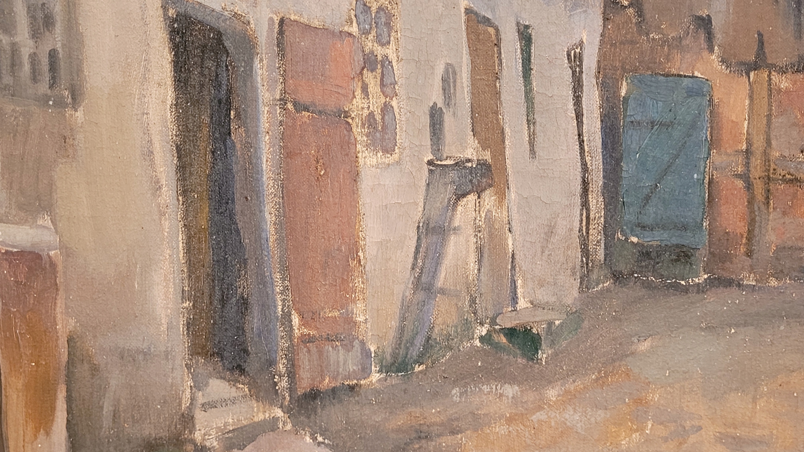 Предмет продажи - красивая, старинная картина маслом " СТАРЫЙ ДВОР".