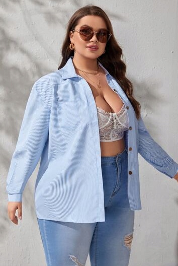СОРОЧКА БОЛЬШОГО РОЗМІРУ SHEIN СИНЯ В СМУЖКУ 52 V3A