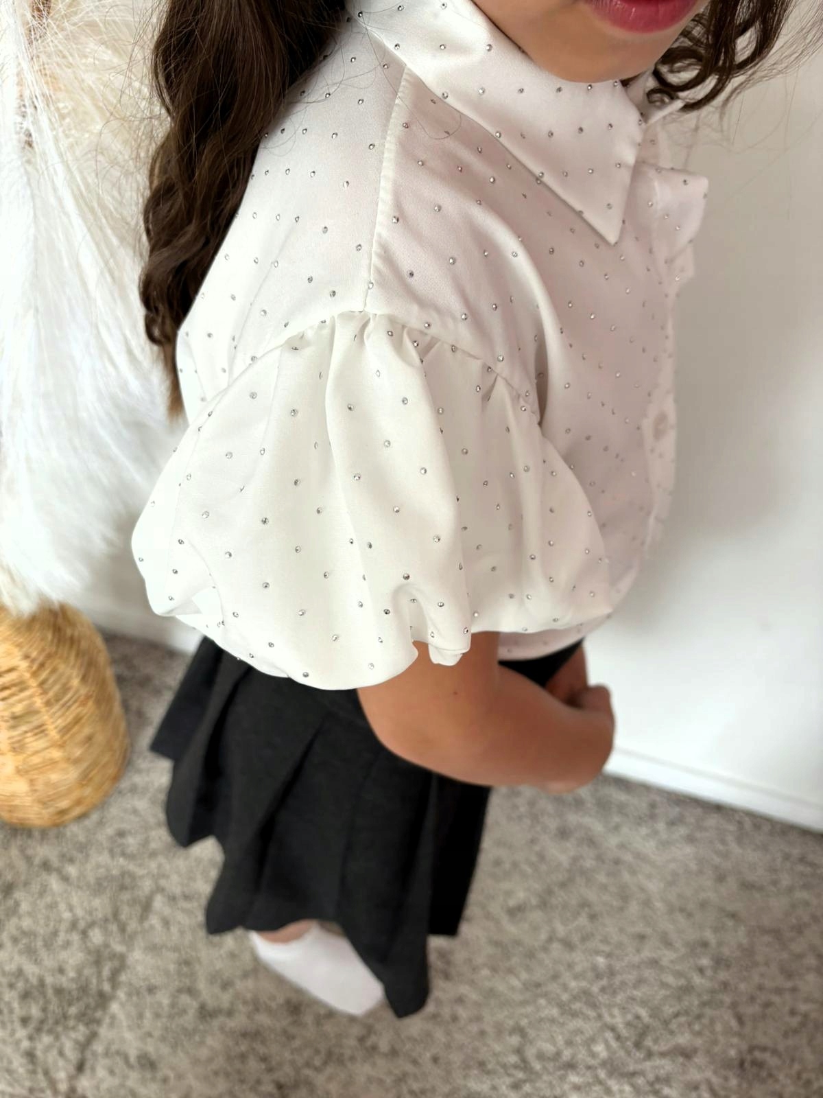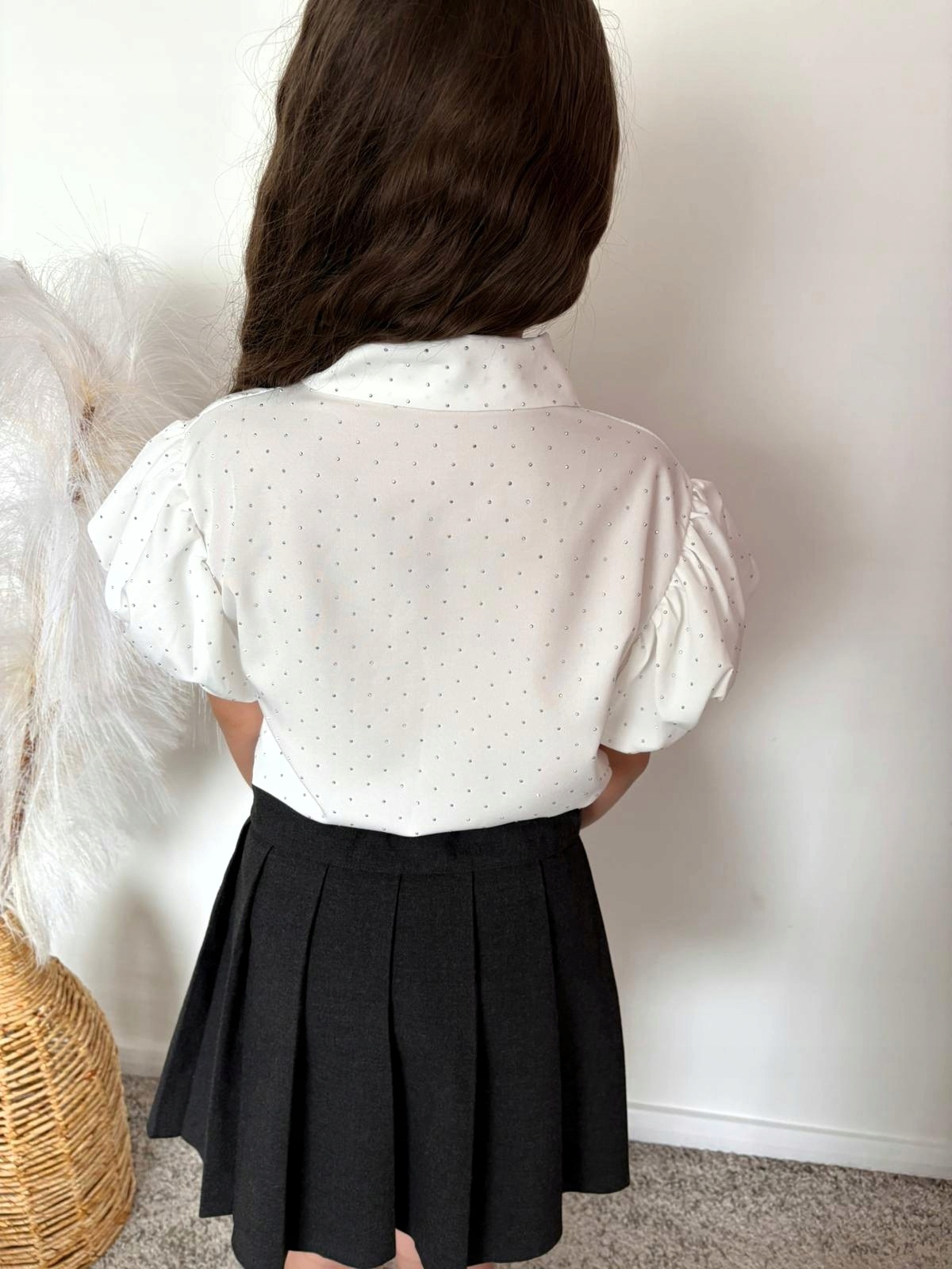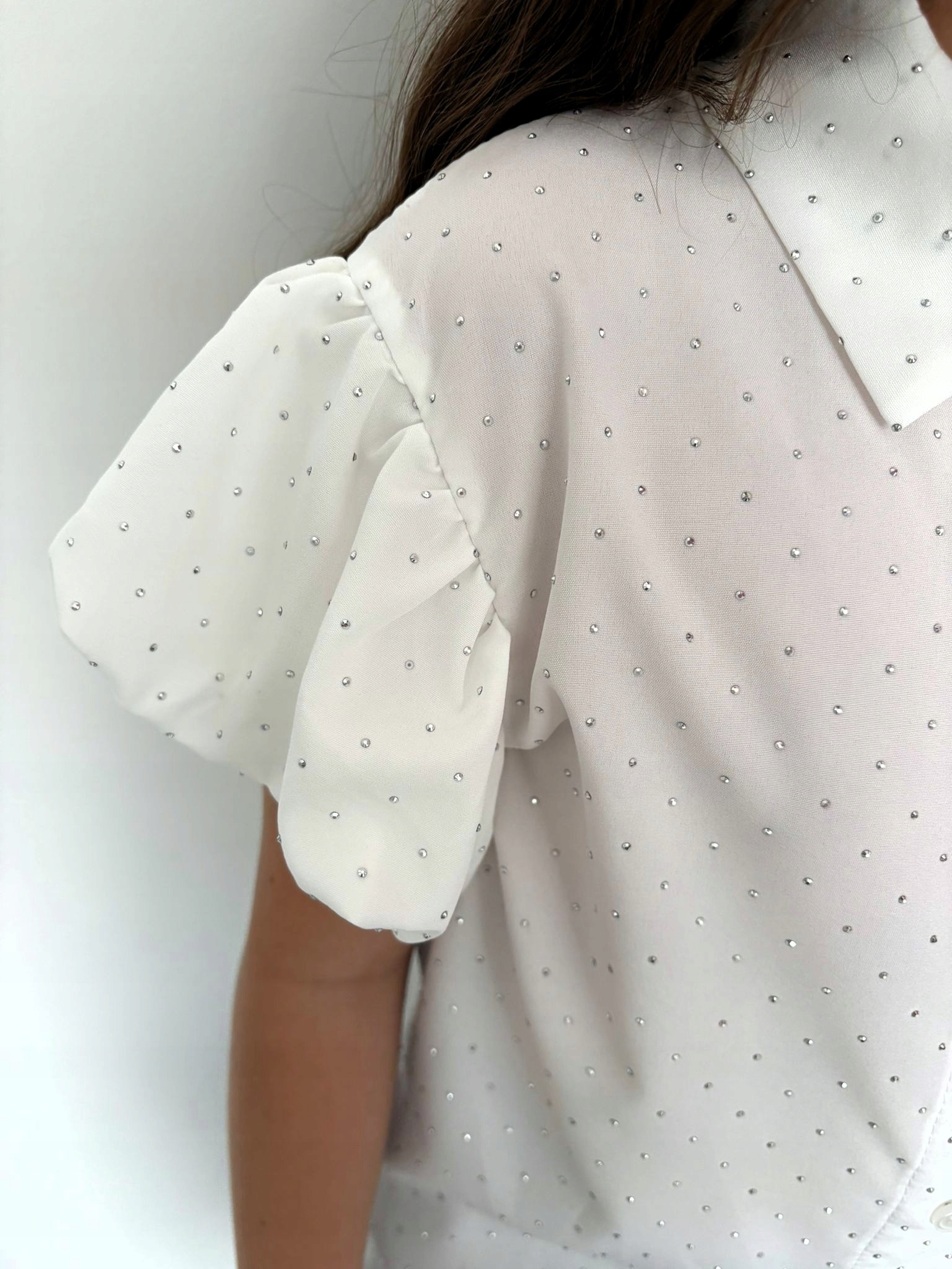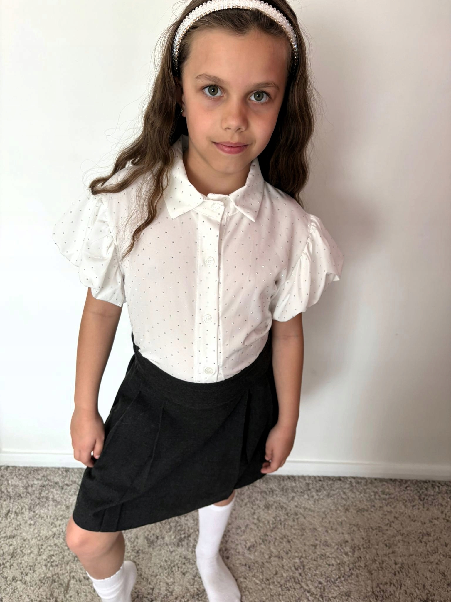 РУБАШКА ДЛЯ ДЕВОЧЕК, КОРОТКИЙ РУКАВ, ЭЛЕГАНТНАЯ ТОРЖЕСТВЕННАЯ РУБАШКА, перекличка, экзамен, БЕЛАЯ