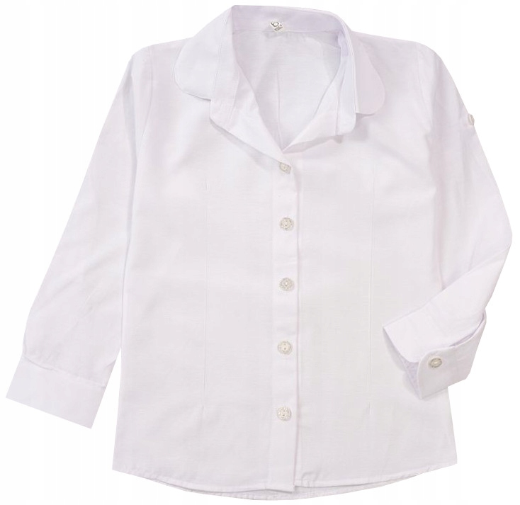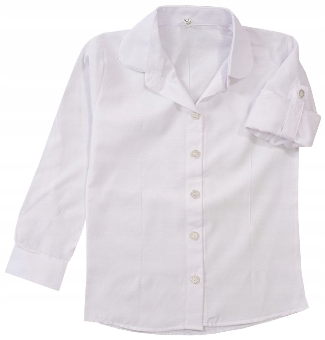 Рубашка с длинными рукавами, съемная, белоснежная, формального, классического кроя. Застегивается на пуговицы, воротник круглый, слегка приталенный, пуговицы с блестками.