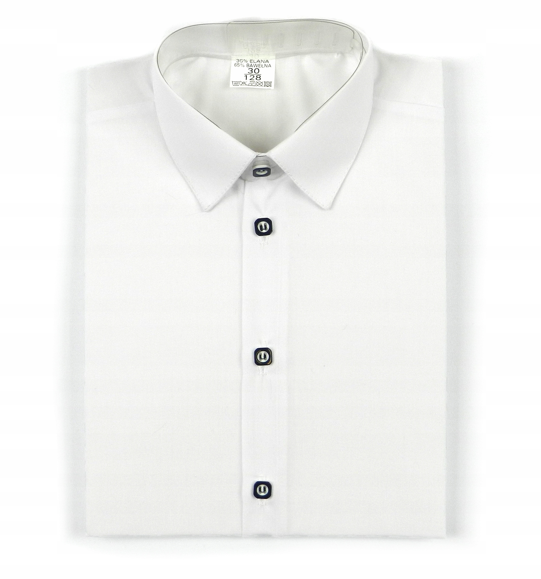 Элегантная белая рубашка для мальчика с длинными рукавами идеально подходит для всех видов школьных, церковных и семейных торжеств. Состав сырья: 35% хлопок, 65% полиэстер. Элегантный костюм (брюки с жилеткой) или просто брюки станут прекрасным дополнением к рубашке.