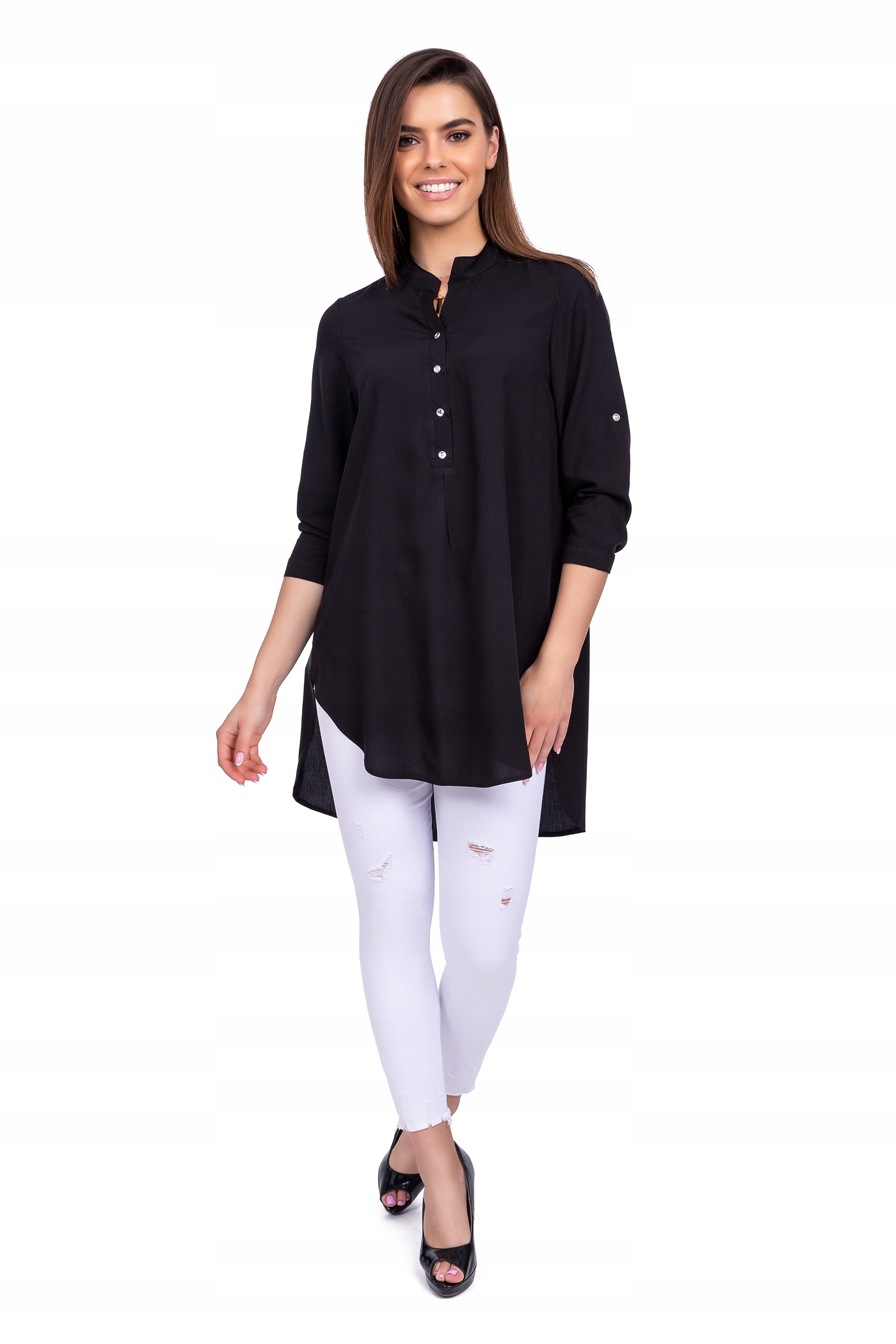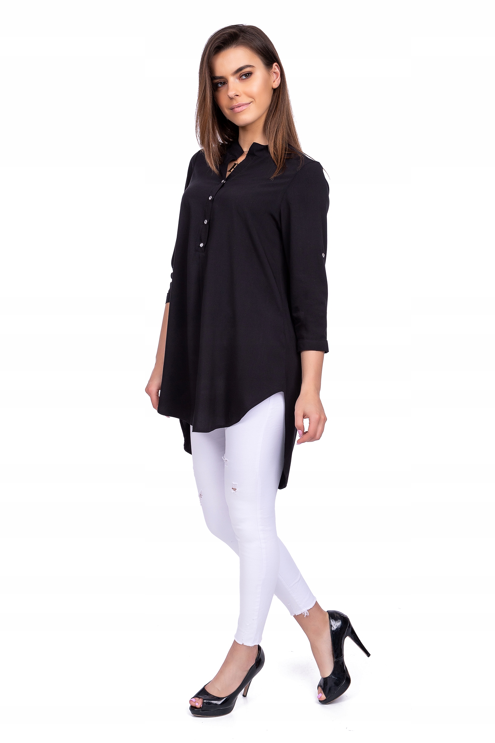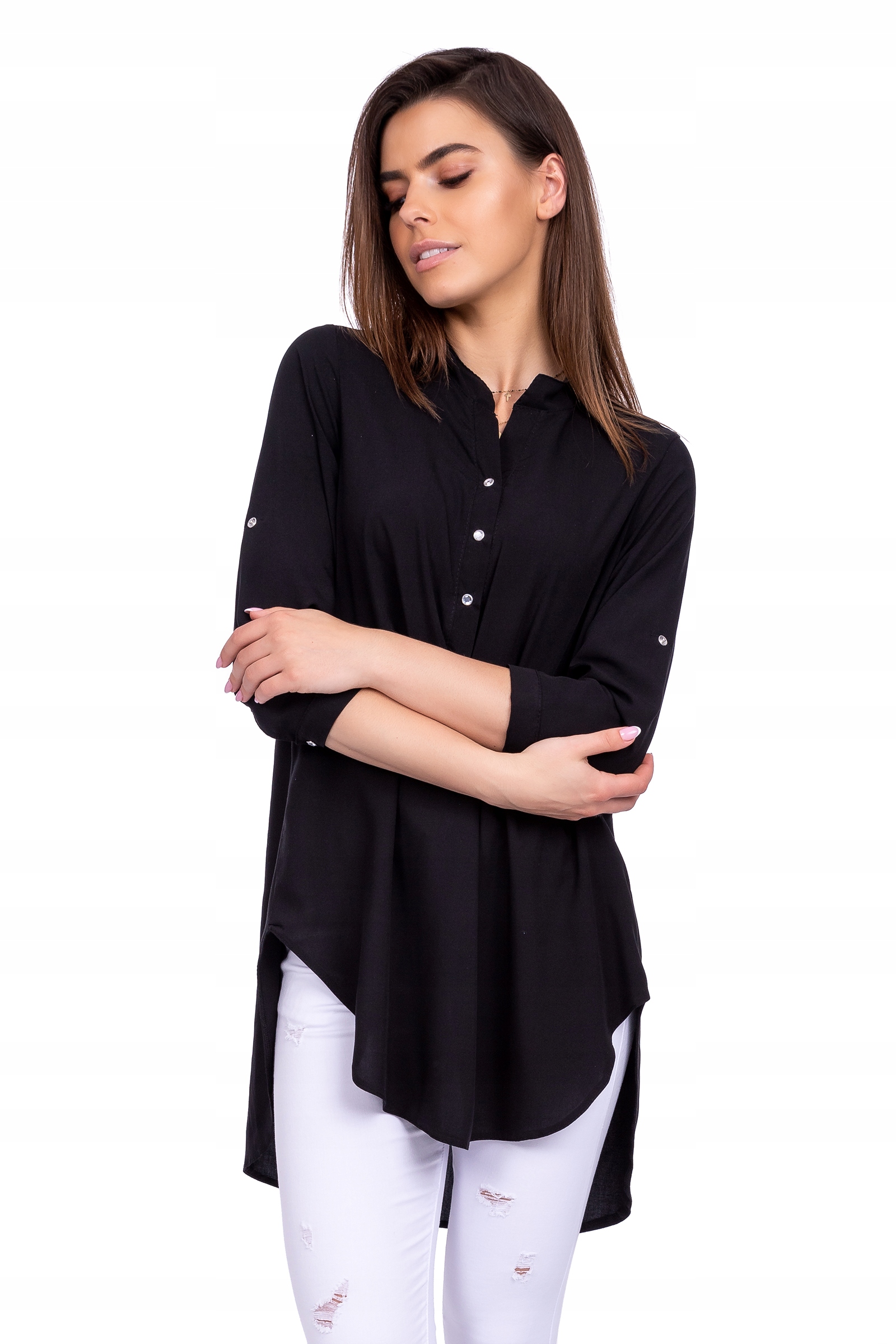 СВОБОДНАЯ, АССИММЕТРИЧНАЯ ДЛИННАЯ РУБАШКА, черная, размер S - 38
