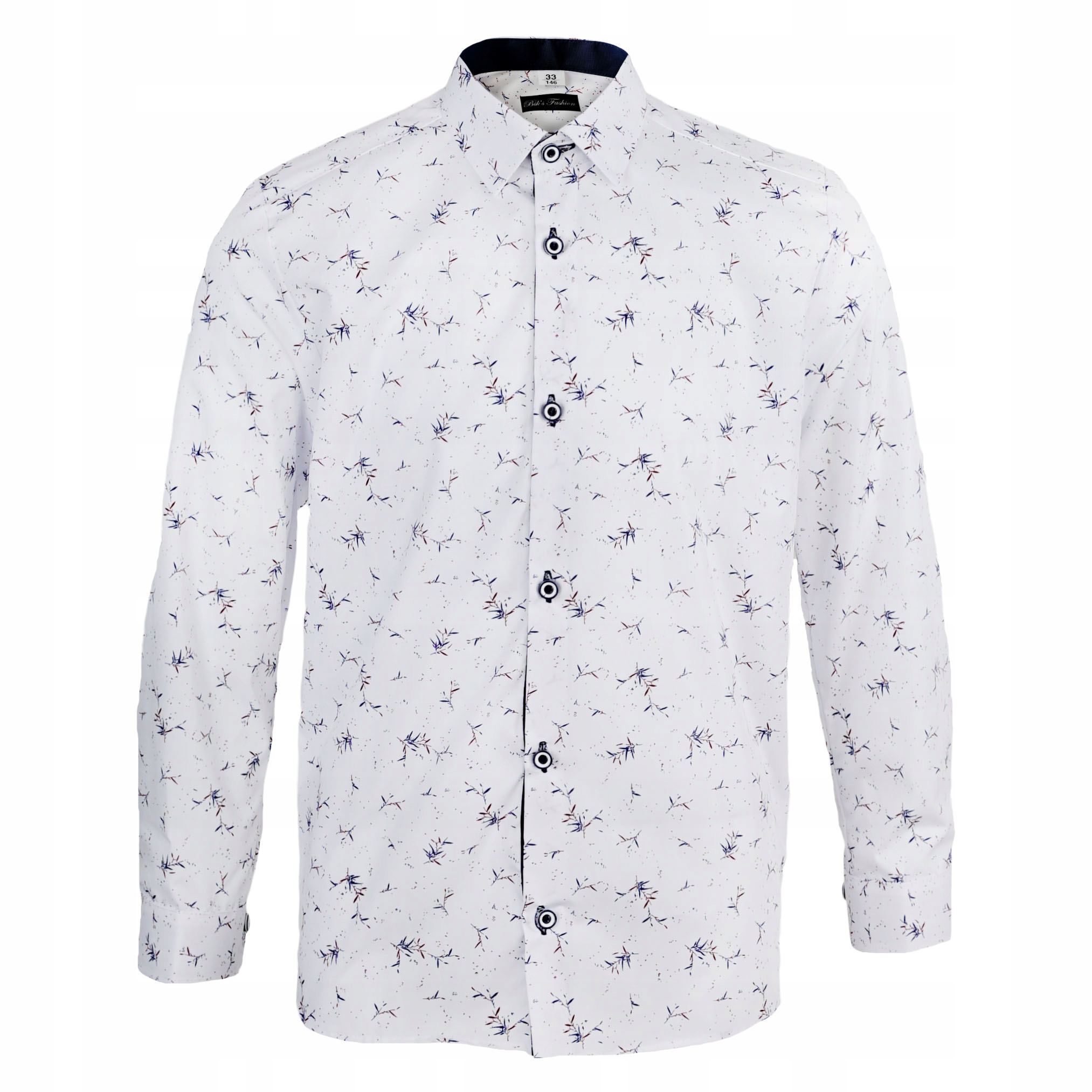 Элегантная белая рубашка для мальчика с длинными рукавами и узором в виде игольных веток