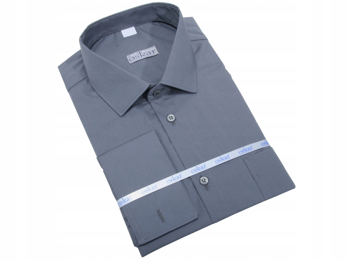 Рубашка графитового цвета высочайшего качества, с длинными рукавами и манжетами, застегивающимися на запонки или пуговицы.