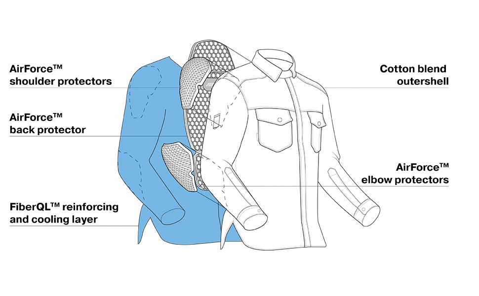 В новом сезоне мотоциклетная рубашка RENEGADE обрела обновленный стиль и еще лучшие, улучшенные параметры. Модель RENEGADE 2.0 – идеальное решение для любителей выразительных и инновационных решений. Она имеет внутренний армирующий слой FiberQL™, который не только гарантирует долгий срок службы и долговечность рубашки, но также обеспечивает достаточный тепловой комфорт благодаря своим охлаждающим свойствам. Сочетание превосходной защиты и высокой воздухопроницаемости также возможно благодаря наличию дышащих сертифицированных протекторов для спины, плеч и локтей (уровень 2).