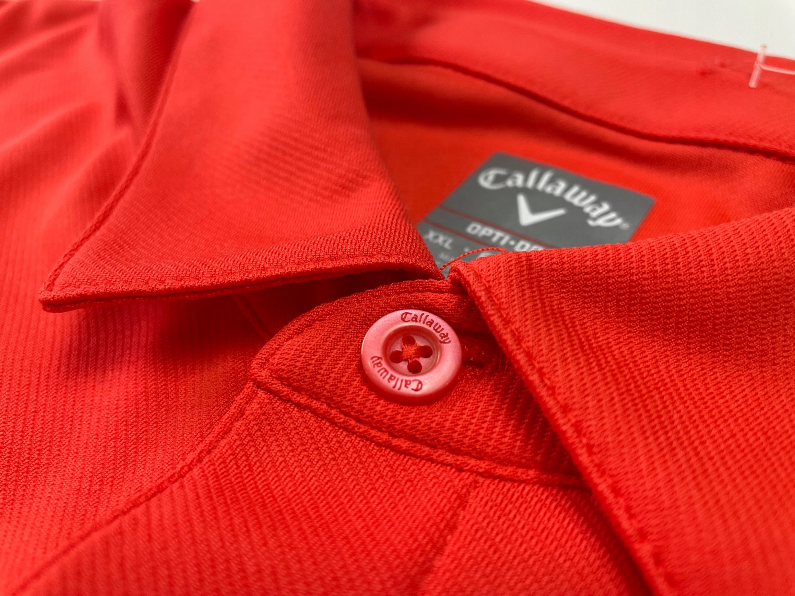 - Рубашка-поло Callaway. Он выполнен в ярком оранжевом оттенке и изготовлен из материала с интересной структурой. Футболка имеет короткие рукава и воротник, застегивающийся на фирменные пуговицы. Имеет классический прямой крой. Спереди напечатан логотип бренда.