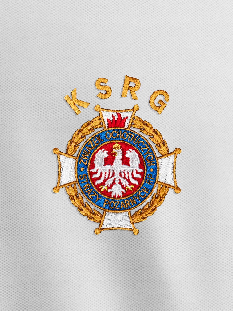- на левой груди вышивка логотипа ZOSP KSRG - желтые нити Мадейра,