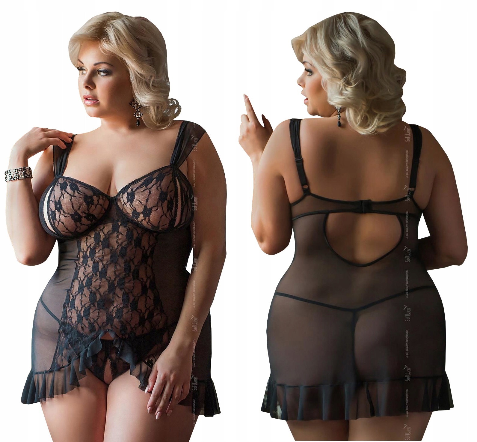 Сорочка SL BIANCA + стринги PLUS SIZE * 5XL * чорний