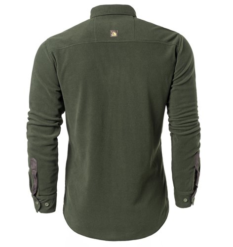 Мужская рубашка темного цвета из теплого флиса, устойчивого к катышкам, что делает ее нежной и мягкой на ощупь. Воротник застегивается на пуговицы, на левой груди прорезной карман на пуговице. Рубашка имеет декоративную отделку коричневой замшей в верхней части карманов, на внутренней стороне воротника и манжет, что придает рубашке элегантный вид.