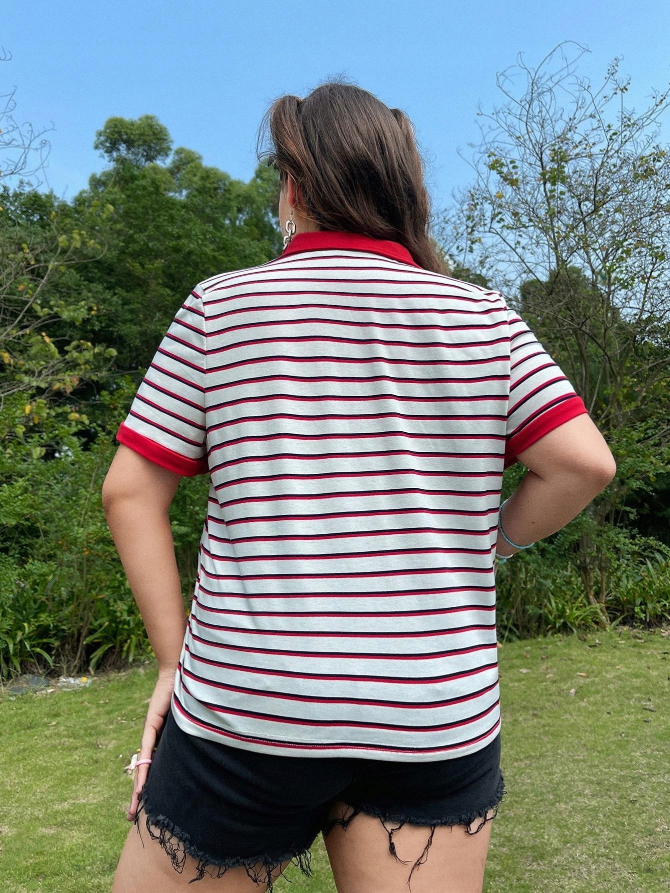 SHEIN ЖЕНСКАЯ ФУТБОЛКА ПОЛО С ПУГОВИЦАМИ В ПОЛОСКУ (18) 46 ebe IC65304