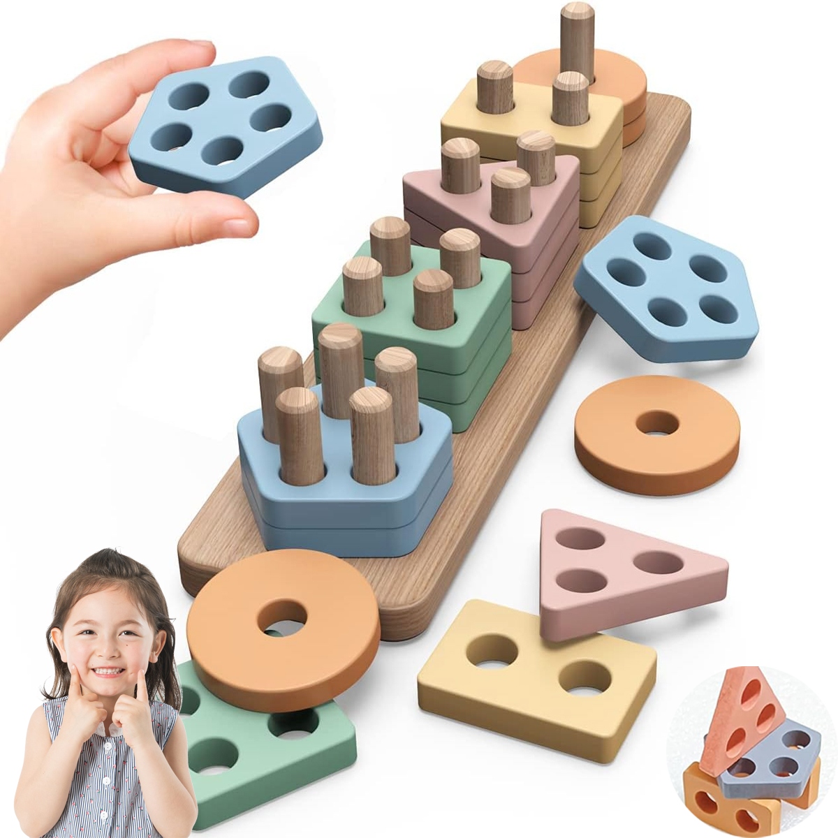 Игрушка Монтессори от 1 года - деревянная игрушка для сортировки и расстановки, 1 2 3 года - игрушка для активности и развития из дерева в пастельных тонах - Монтессори - развивающая игрушка для малышей