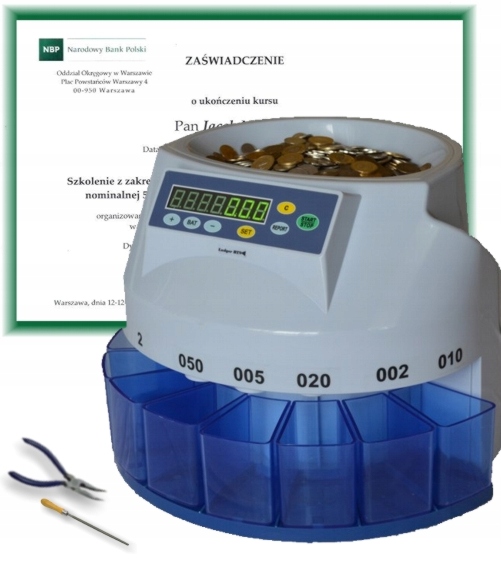 Выпускается в версии, сортирующей и считает 8 купюр (без 1 гроша, / 1 грош упадет в контейнер с 10 копейками).