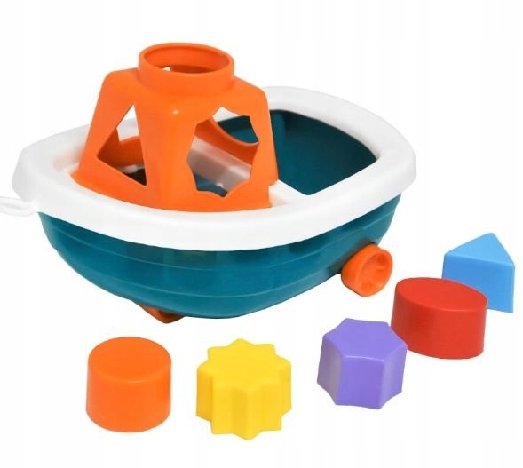 Развивающая игрушка «Кораблик» способствует развитию моторики ребенка. Благодаря небольшим размерам подходит для игр в ванной, бассейне и на природе. Сортировщик «Корабль» представляет собой набор из 5 кубиков разного цвета и формы, для которых ребенок должен найти нужную дырку в рубке лодки. Игрушка способствует развитию мелкой моторики, внимания и усидчивости у детей. Через игру ребенок учится сравнивать элементы по форме и размеру, изучает цвета и учится считать. «Кораблик» оснащен крючком на веревочке, благодаря которому ребенок может тянуть его за собой. элементы игрушки с закругленными краями выполнены из безопасного пластика. - 2 цветовых варианта