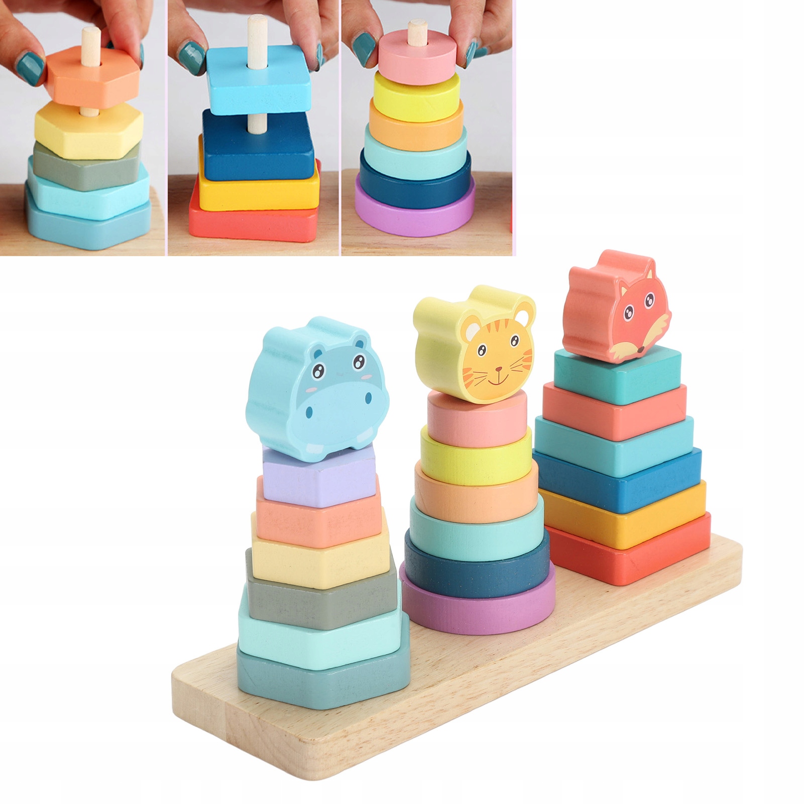 1. Улучшает распознавание форм. В набор деревянных строительных блоков входят детали в форме животных, которые помогают детям распознавать различные геометрические фигуры, развивая их наблюдательность и навыки пространственного воображения.