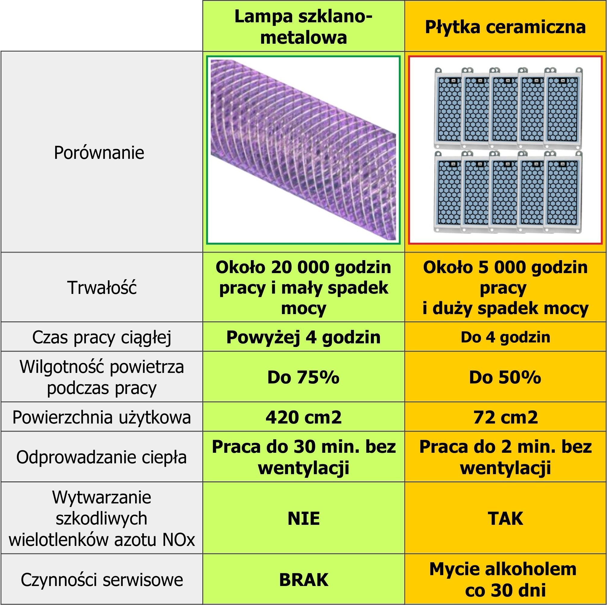 Озонаторам часто приходится работать в сложных условиях, например, при повышенной влажности в помещениях после пожаров и противопожарных работ. Стеклометаллические светильники приспособлены к работе в условиях повышенной влажности, керамическая плитка – нет.