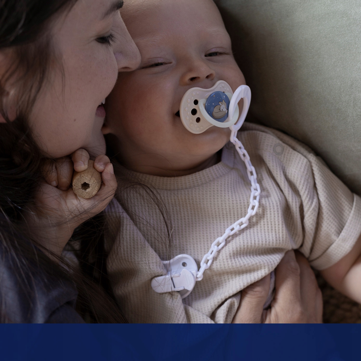 Динамическая успокаивающая соска LOVI создана в сотрудничестве с неврологами. Он имеет уникальную структуру из гетерогенного силикона и симметричную форму, напоминающую сосок. Не нарушает сосательный рефлекс и естественное развитие речи и прикуса при соблюдении ортодонтических и неврологопедических рекомендаций.