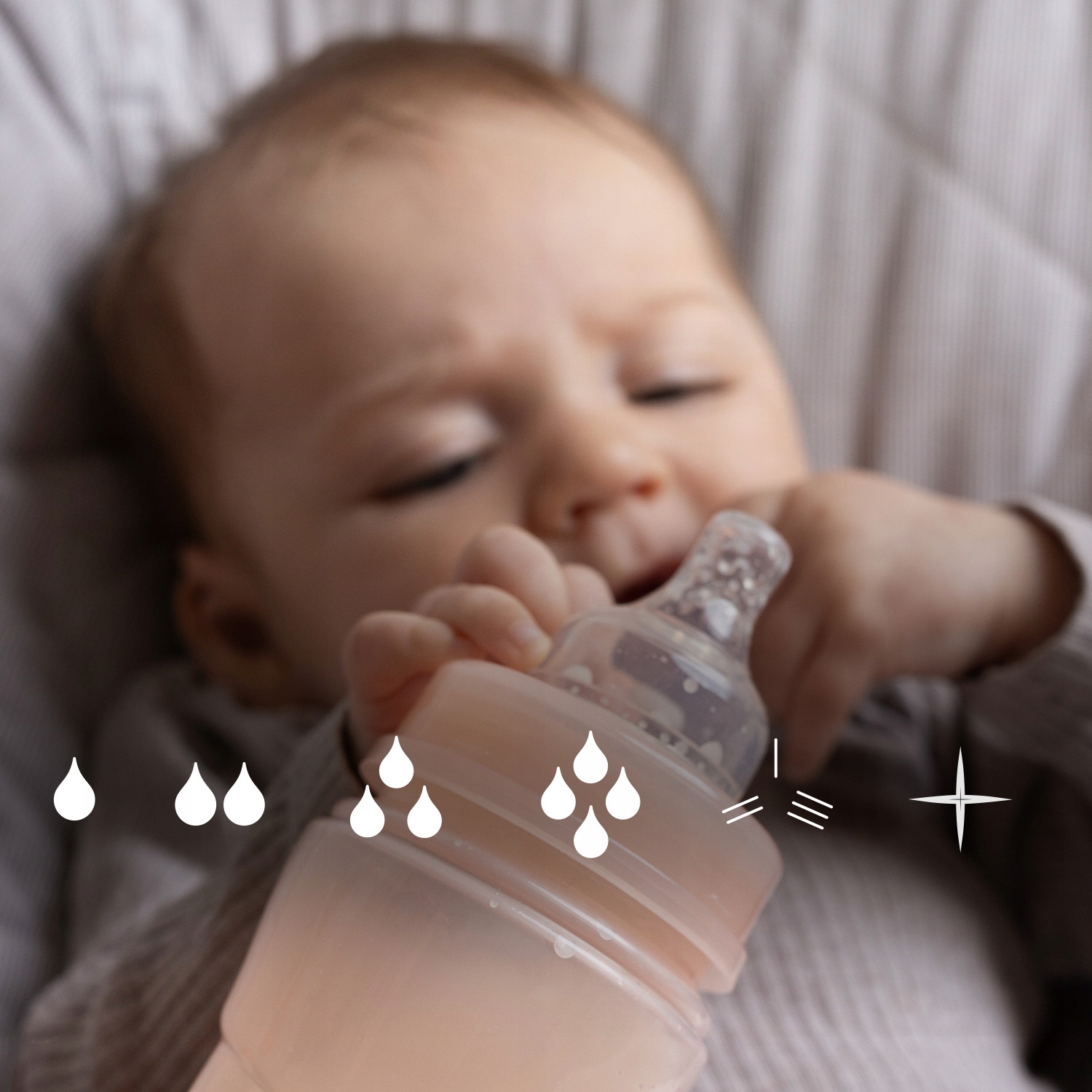 Мягкая и динамичная соска для кормления не нарушает сосательный рефлекс ребенка и не препятствует грудному вскармливанию.