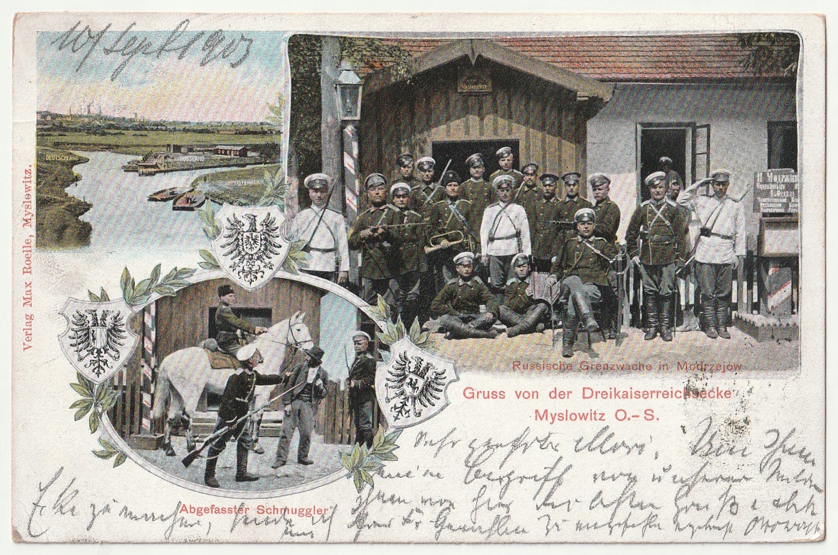 СОСНОВЕЦ. МЫСЛОВИЦЕ. Уголок Трех Императоров, виден российский пограничник, клеймо 09.10.03, небольшие потертости и загиб края. вышел из обращения.