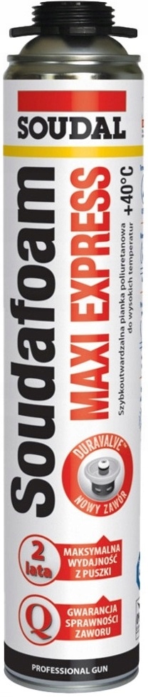 Soudafoam Maxi Express представляет собой новую высокую, высокопроизводительную полиуретановую пену пистолета, предназначенная для применения в экстремальных климатических условиях -при высокой температуре (до +40 ° C) и низкой влажности. Протестированная в субтропических условиях, инновационная формула пены Maxi Express характеризуется очень коротким временем обработки (быстрое эпидермис и отверждение в перекрестном разрешении), а также превосходной эффективностью и регулярностью структуры. При применении при высоких температурах (до +40 ° C) он не показывает дефекты, типичные для стандартной пены.