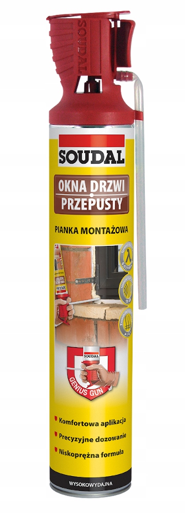Многоразовая монтажная пена с запатентованным аппликатором Genius Gun отличаетсяидеальной адгезией к типичным строительным основаниям. Мы можем успешно использовать его, среди прочего: для установки и шумоизоляции подоконников, лестничных ступеней и жалюзи, изоляции центрального отопления и элементов водопровода и канализации, теплоизоляция стыков крыши и потолка, а также для заполнения кабельных и трубных проходок.