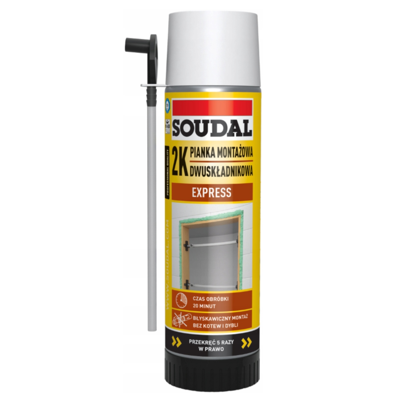 Профессиональная два -компонентная монтажная пена Brand soudal , созданный для быстрой и постоянной установки без необходимости механических закрепителей. Благодаря химической реакции между двумя ингредиентами пена закалена независимо от влаги воздуха , которая позволяет использовать его даже в закрытых пространствах и местах с ограниченным доступом к воздуху.