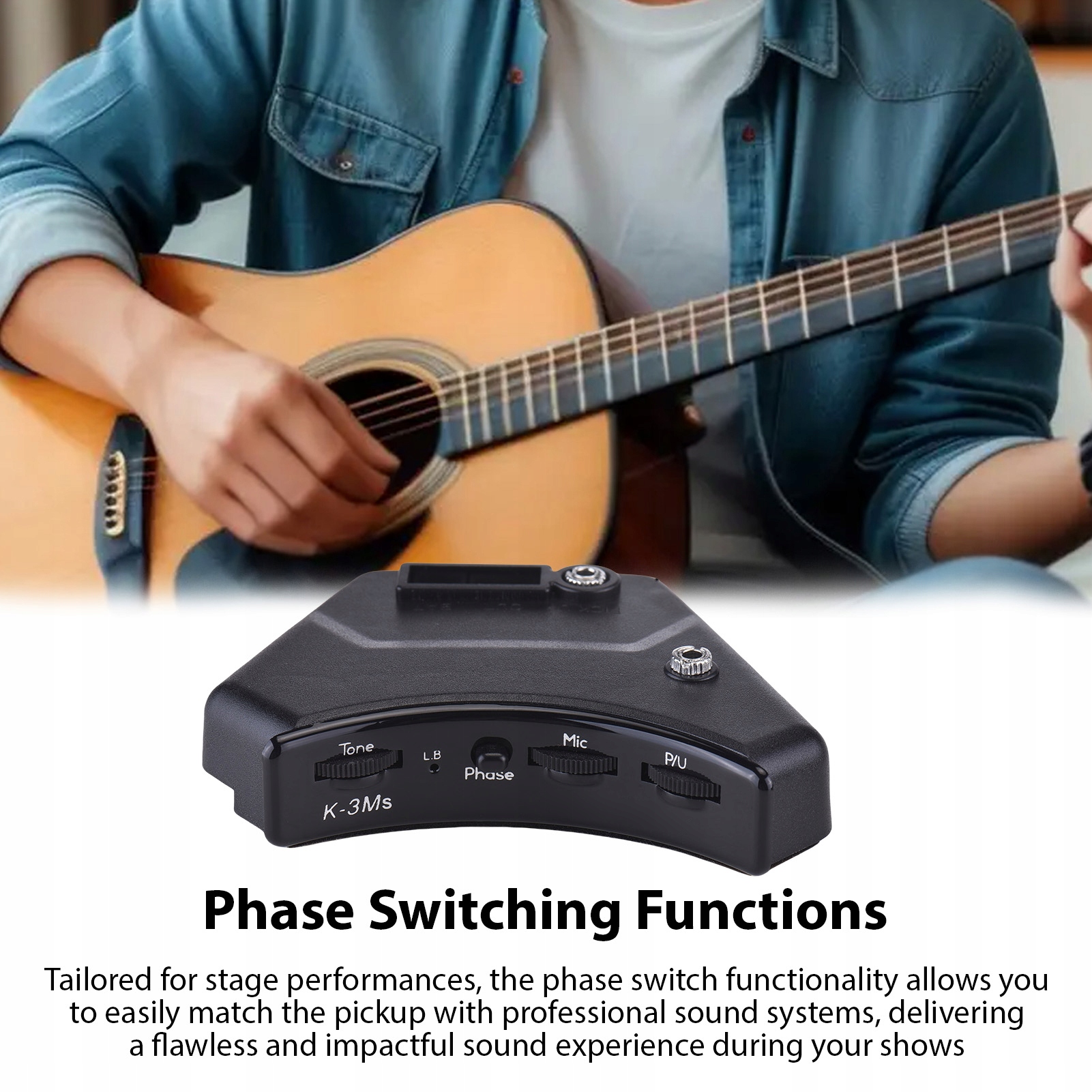 3. Независимый регулятор громкости: система с двумя звукоснимателями позволяет независимо регулировать громкость пьезозвукоснимателя и микрофона, позволяя достичь желаемого звукового баланса во время живых выступлений.