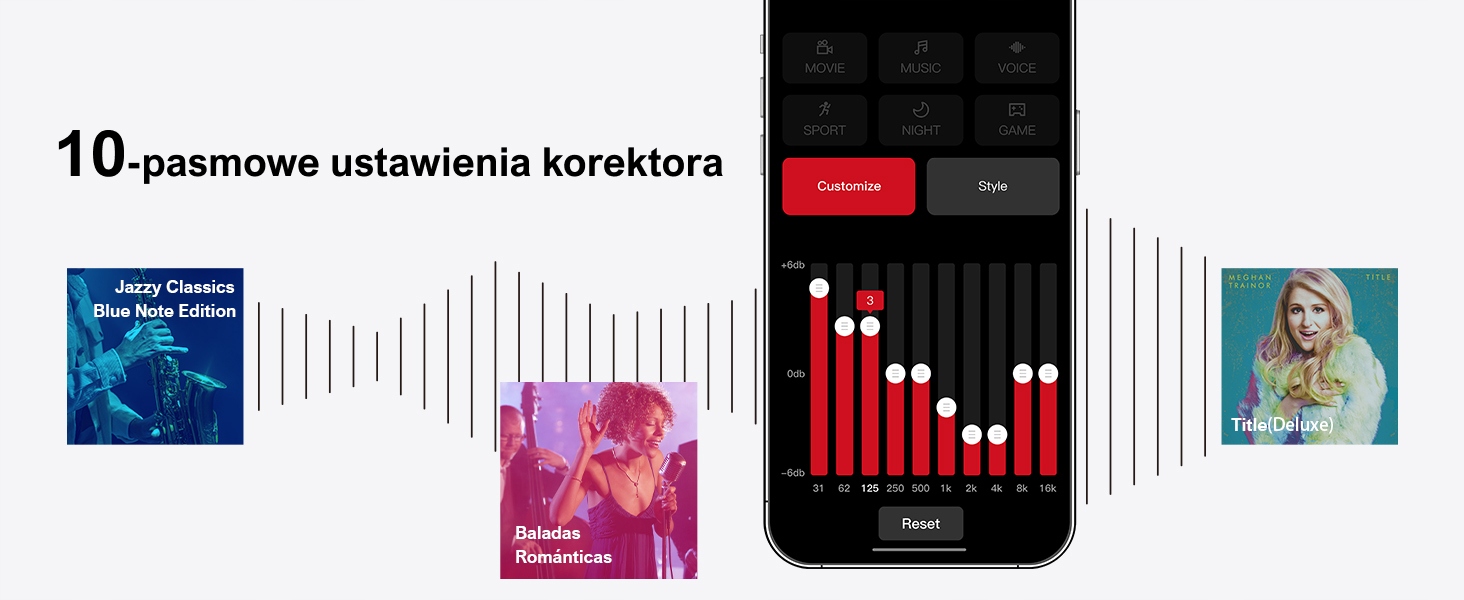Поднимите свои звуковые впечатления благодаря 6 адаптированным режимам эквалайзера: фильм, музыка, голос, спорт, игра и ночь, каждый из которых точно настроен для оптимального исполнения. Кроме того, используйте функцию «Адаптировать» приложения приложения Ultimea, чтобы точно настроить звук, чтобы получить идеальный, индивидуальный опыт.