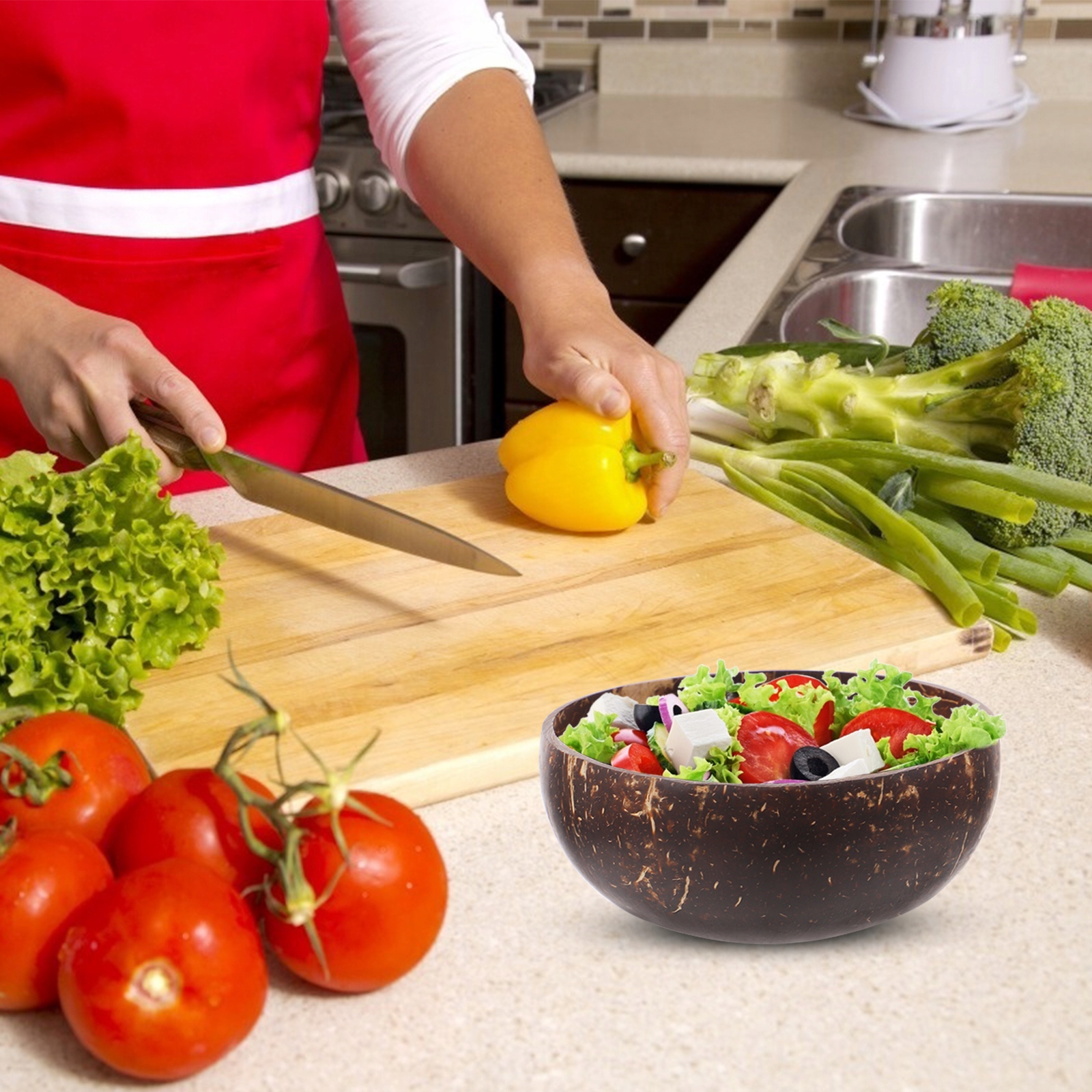 В этой миске из скорлупы кокосового ореха полностью использован натуральный, экологически чистый материал, и она полна творчества. Миска из скорлупы кокоса подойдет для салатов и десертов. Эти маленькие кусочки тропического рая станут отличным дополнением вашей кухни.
