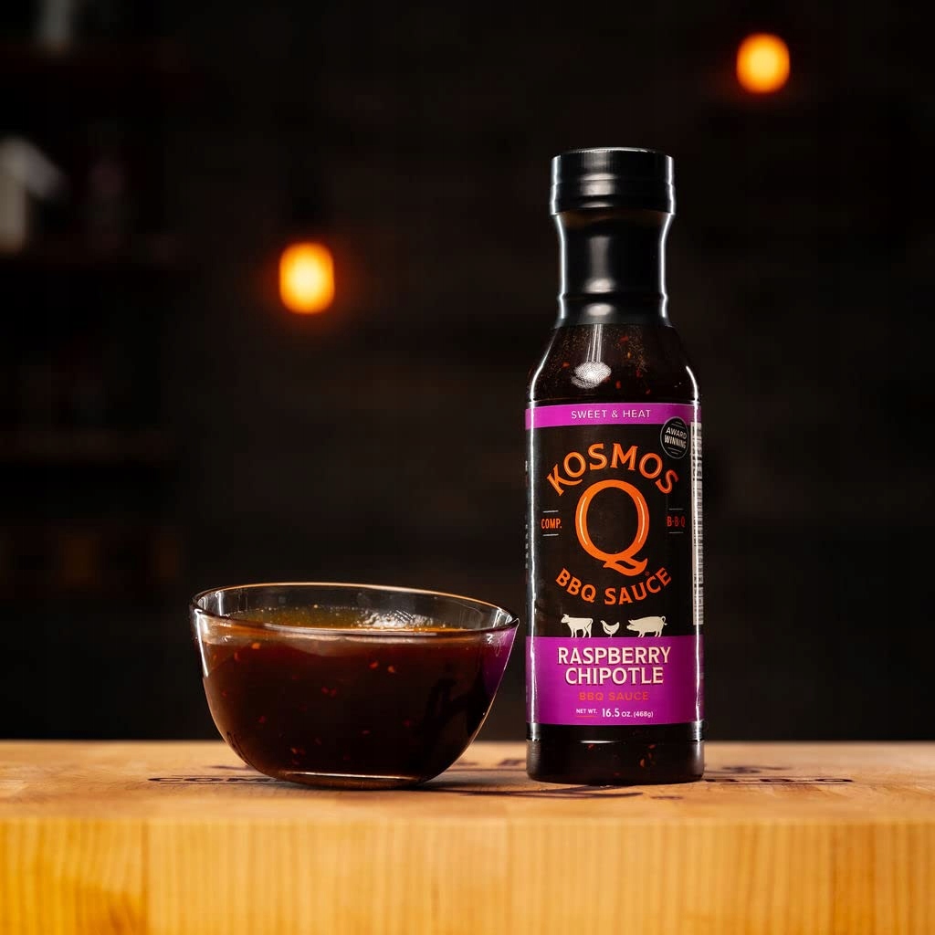 После многих тестов и улучшений Q Kosmo представляет соус барбекю с малиной Chipotle, который сочетает в себе естественную сладость малины с тонкой резкостью перца чипотла . Эта комбинация ароматов делает соус идеально сочетается со свининой, птицей, оленикой, ягненком и многими другими блюдами
