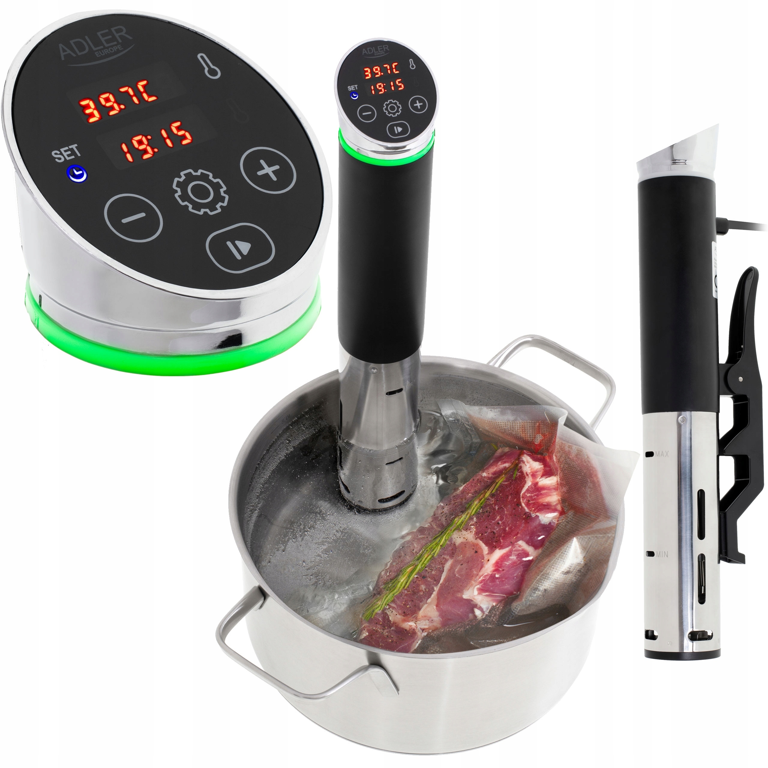 Мультиварка су-вид ADLER AD 6415 – это устройство для медленного приготовления пищевых продуктов, которое позволяет сохранить их полезные вещества и подчеркнуть неповторимый вкус любимых блюд. Продукты питания, упакованные под вакуумом в специальные пакеты, помещаются в кастрюлю с водой и готовятся при точно контролируемой температуре, которая обычно значительно ниже, чем при традиционном приготовлении продуктов. Приготовление су-вид позволяет сохранить полезные вещества блюд и подчеркнуть их неповторимый вкус. Настройка температуры от 20 до 95°С гарантирует равномерное приготовление продуктов. Время приготовления в устройстве мы можем установить от 1 минуты до почти 100 часов.