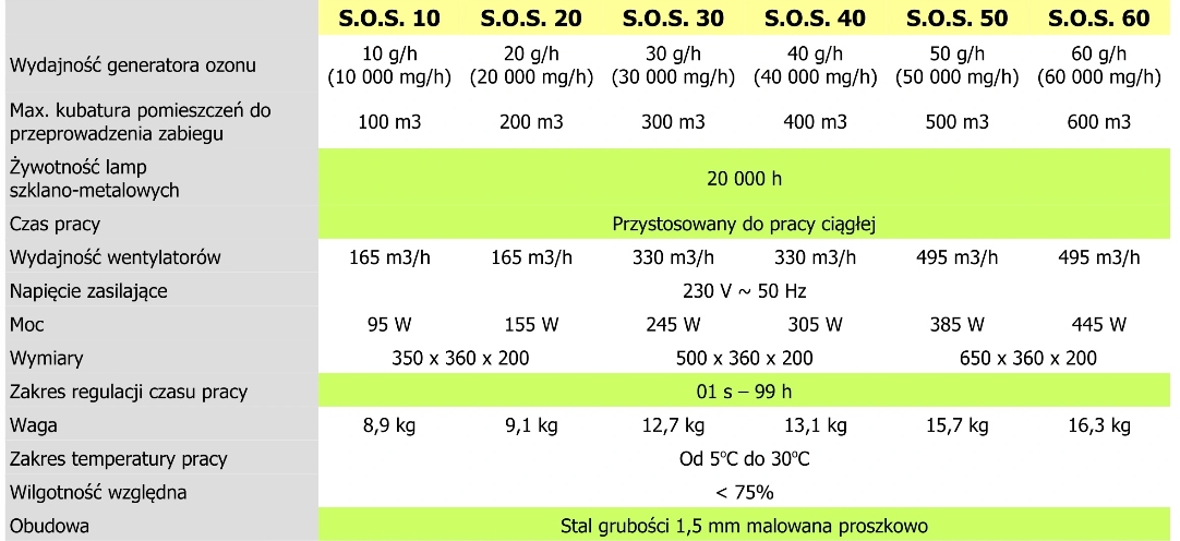 Озоновые генераторы S.O.S. Они были спроектированы и построены как ответ на высокие требования индустрии DDD в отношении устройств дезинфекции и дезодорации. непрерывный. Озонаторы на керамических плитках могут работать макс. 3-4 часа и требуют технического обслуживания - они должны быть промыты один раз в месяц, например, с изопропиловым спиртом.