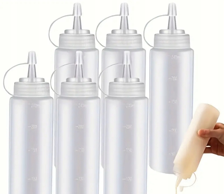 бутылка соусов подходит для приготовления пищи, украшения, выпечки и подачи блюд. Благодаря этому вы можете украсить свою выпечку и смешать и подавать домашнюю заправку или соус для гриля