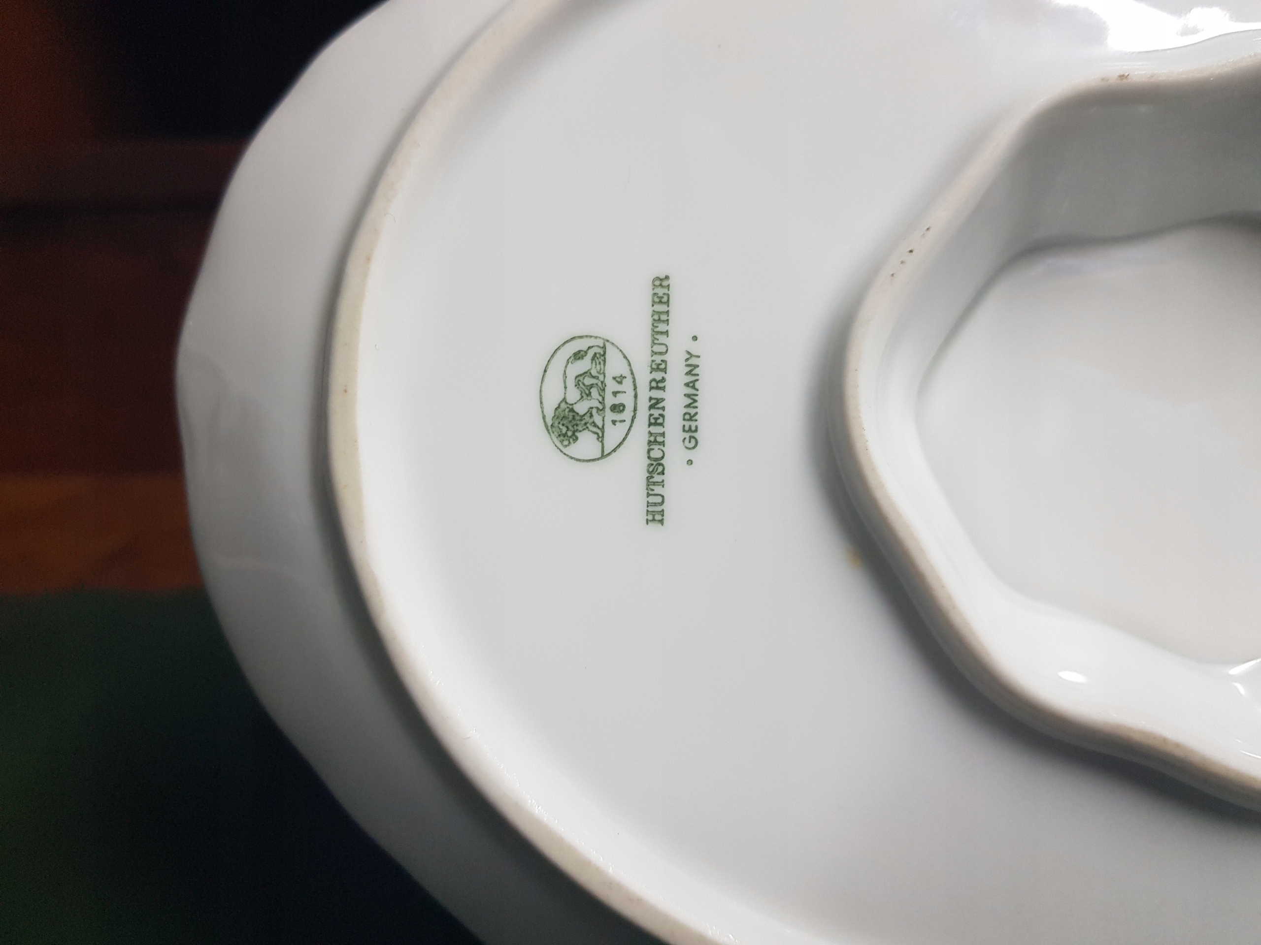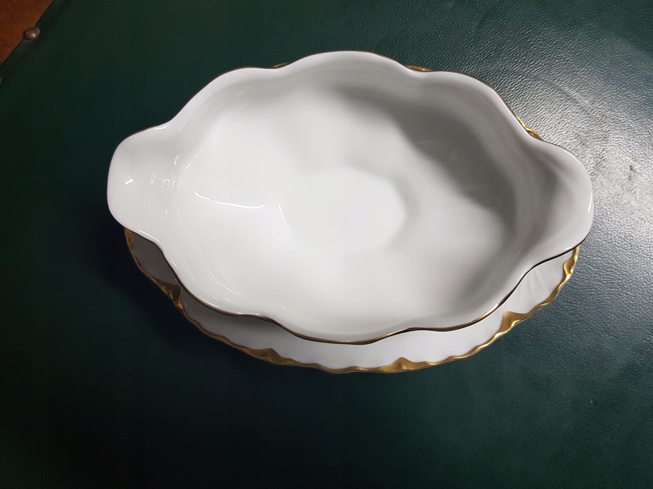 Предмет аукциона — белый соусник Hutschenreuther с позолоченными краями.