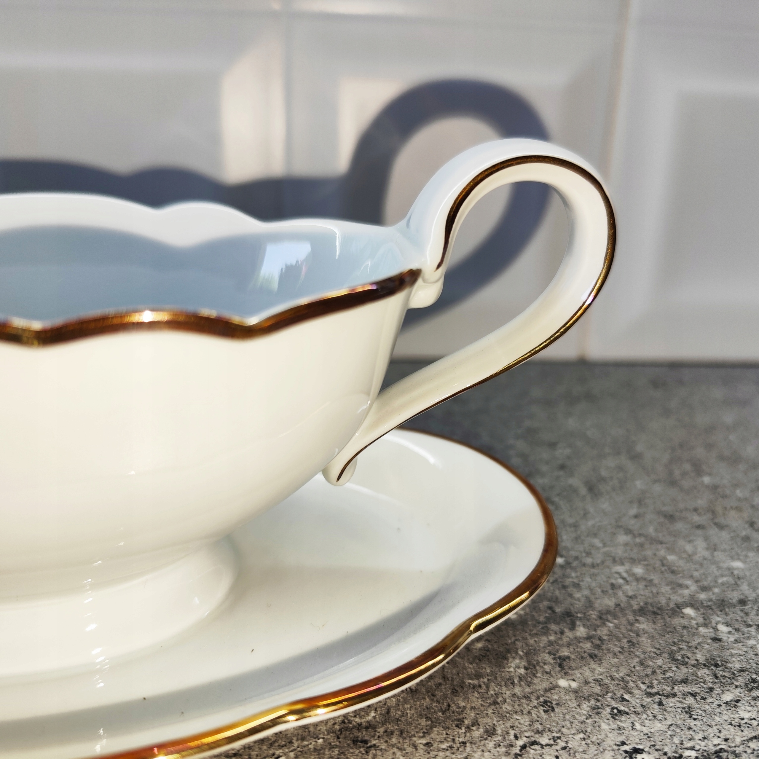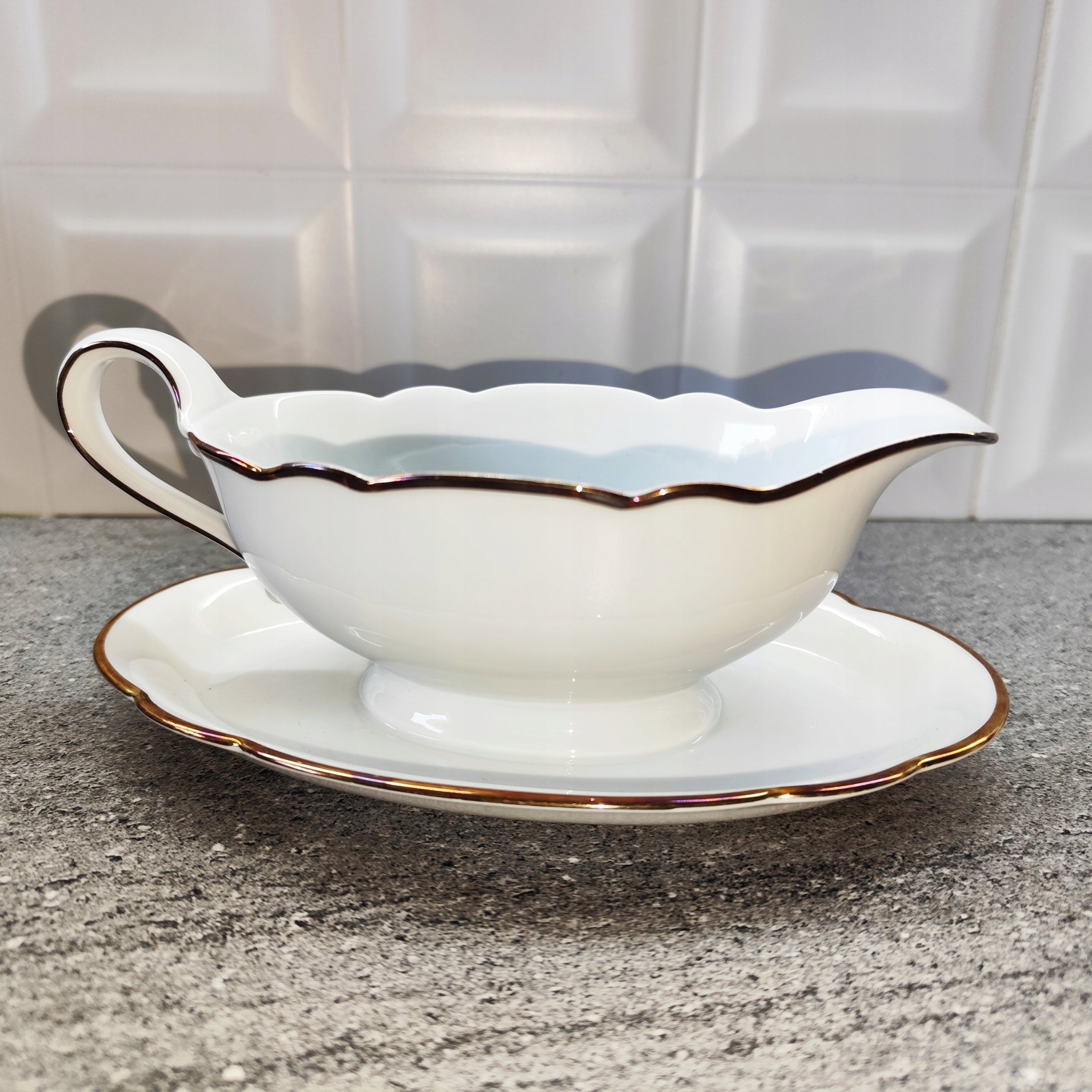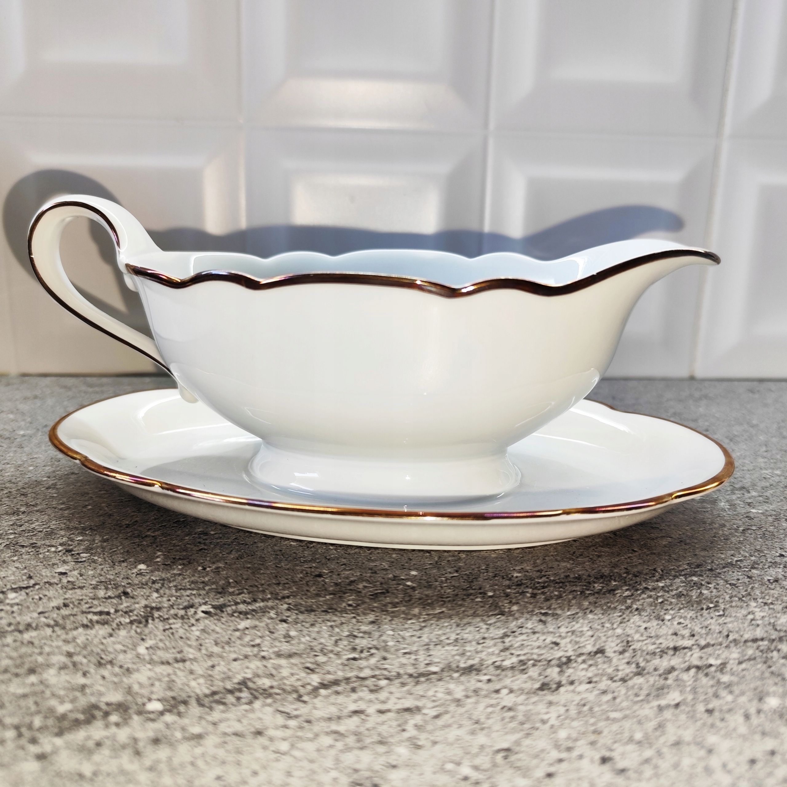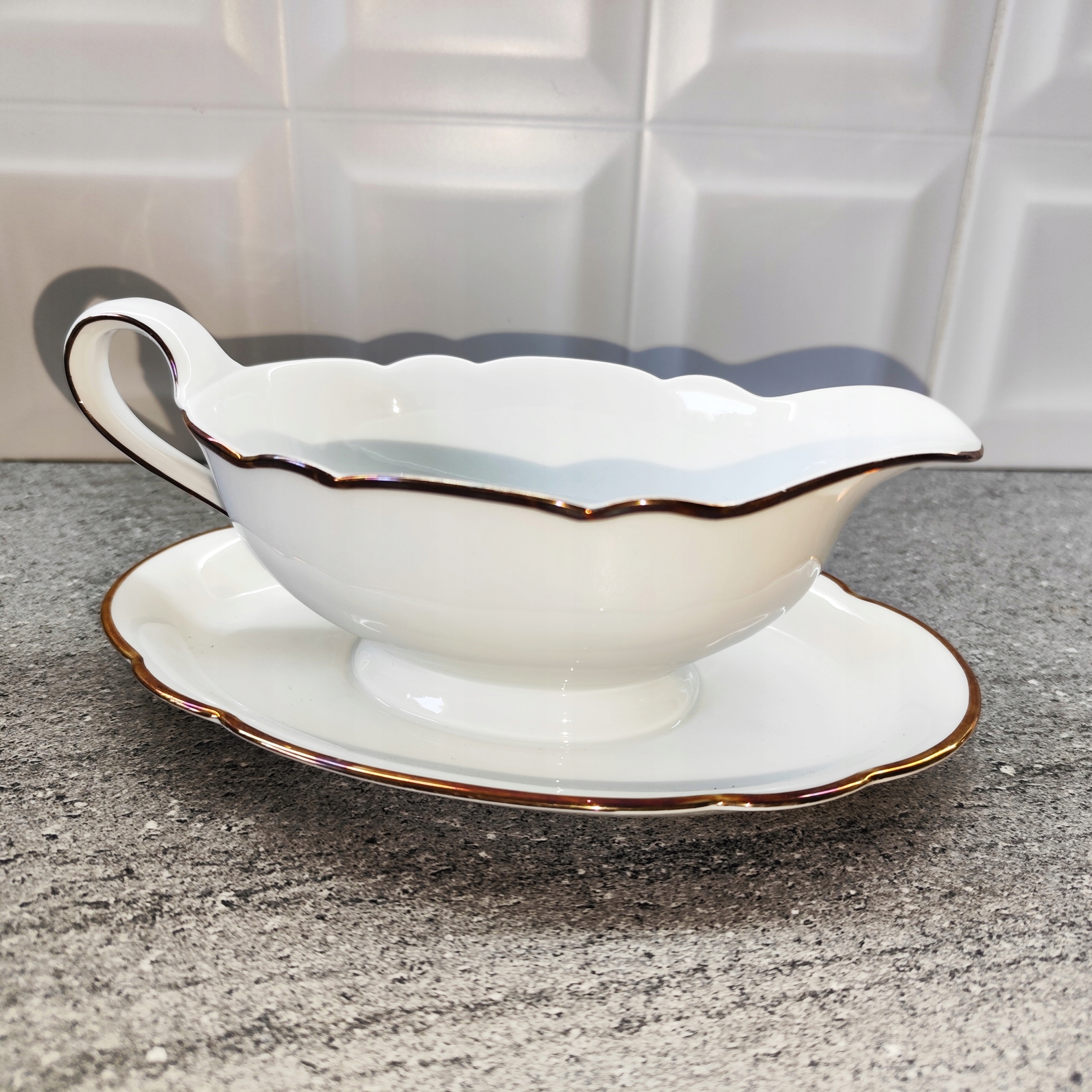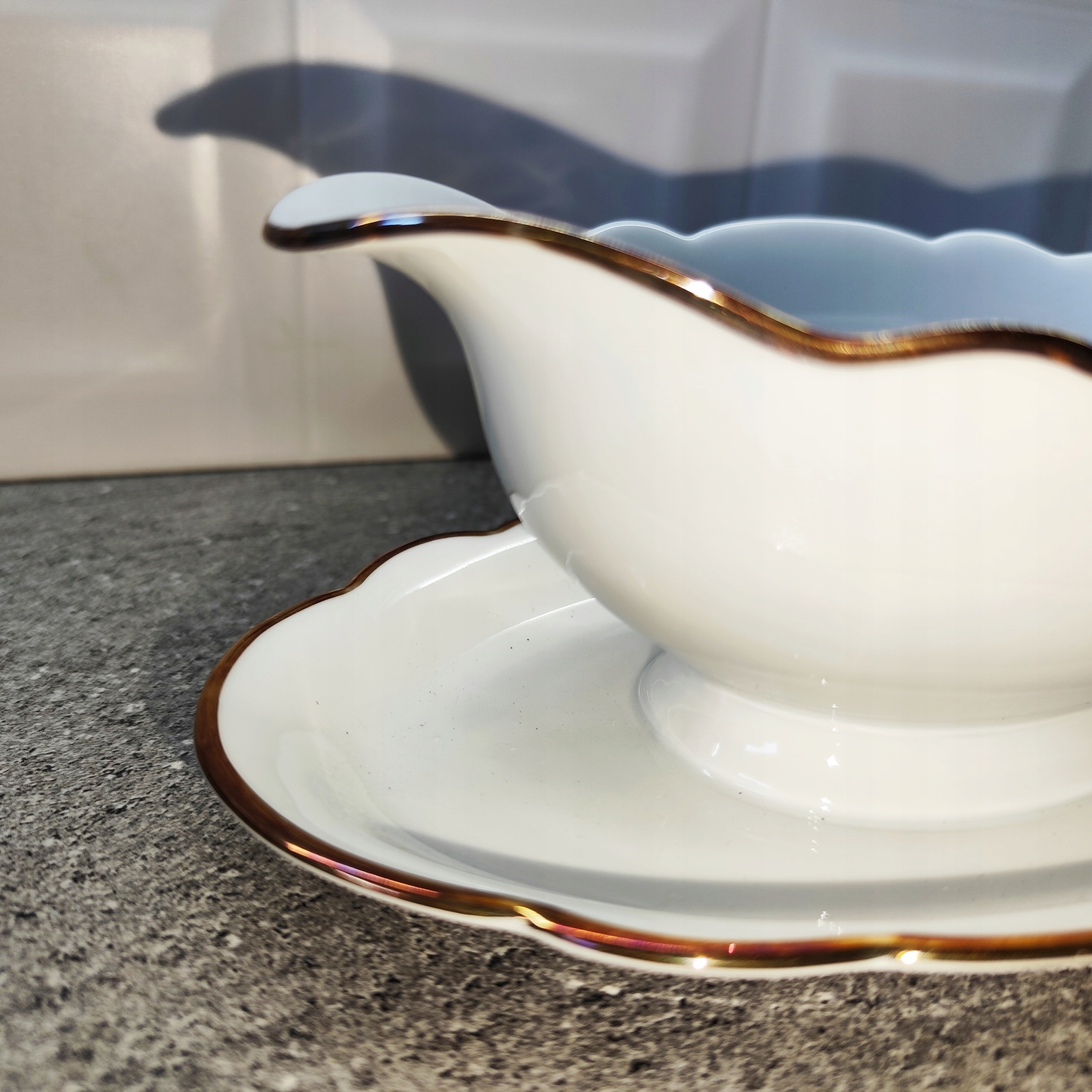 Белый фарфоровый соусник с позолотой, подпись Seltmann-Weiden Inka.