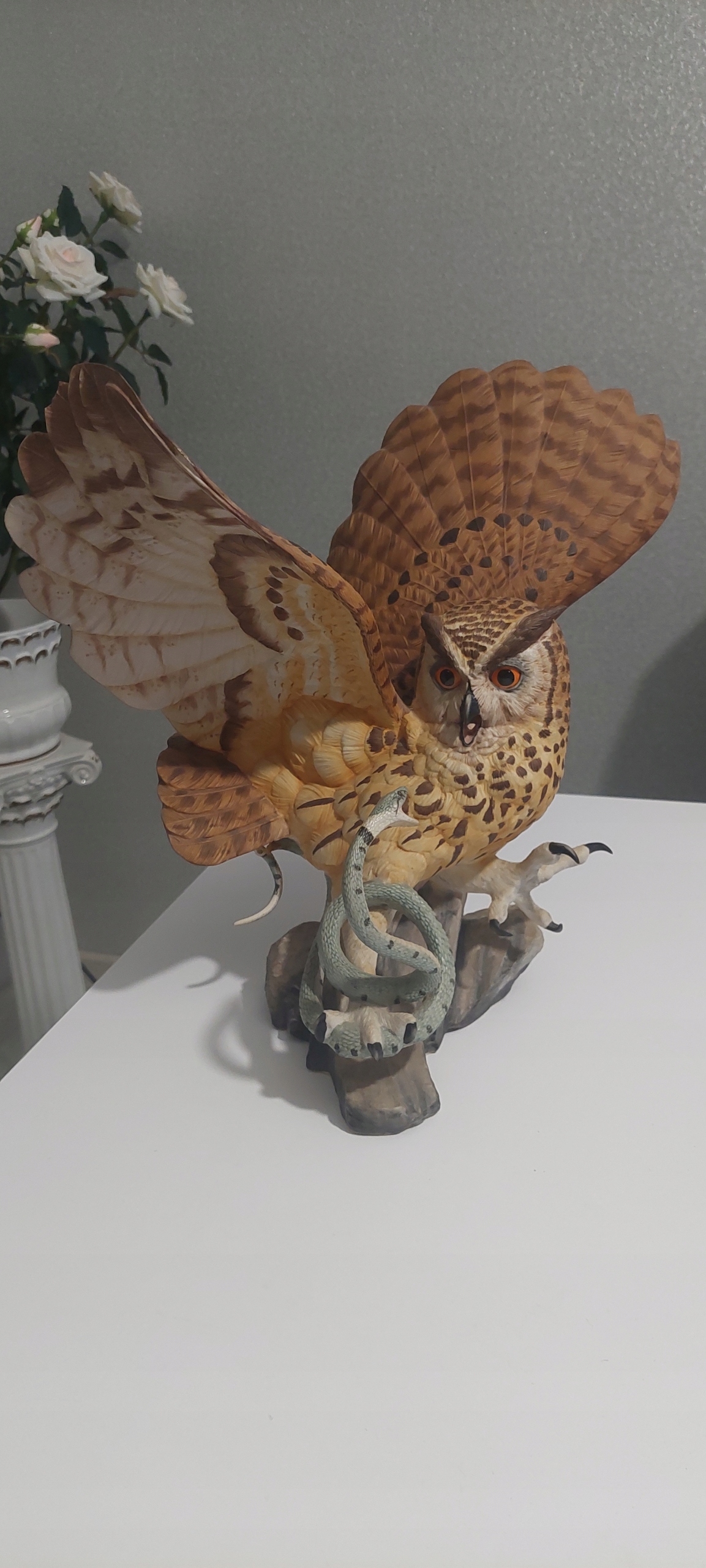 Франклин Минт Сова с размерами 33 см, ширина 33 см, длина 21 см. Сова имеет приклеенный шланг хвост и поврежденное одно перо, видимое на картинках. Кроме того, очень хорошее состояние.