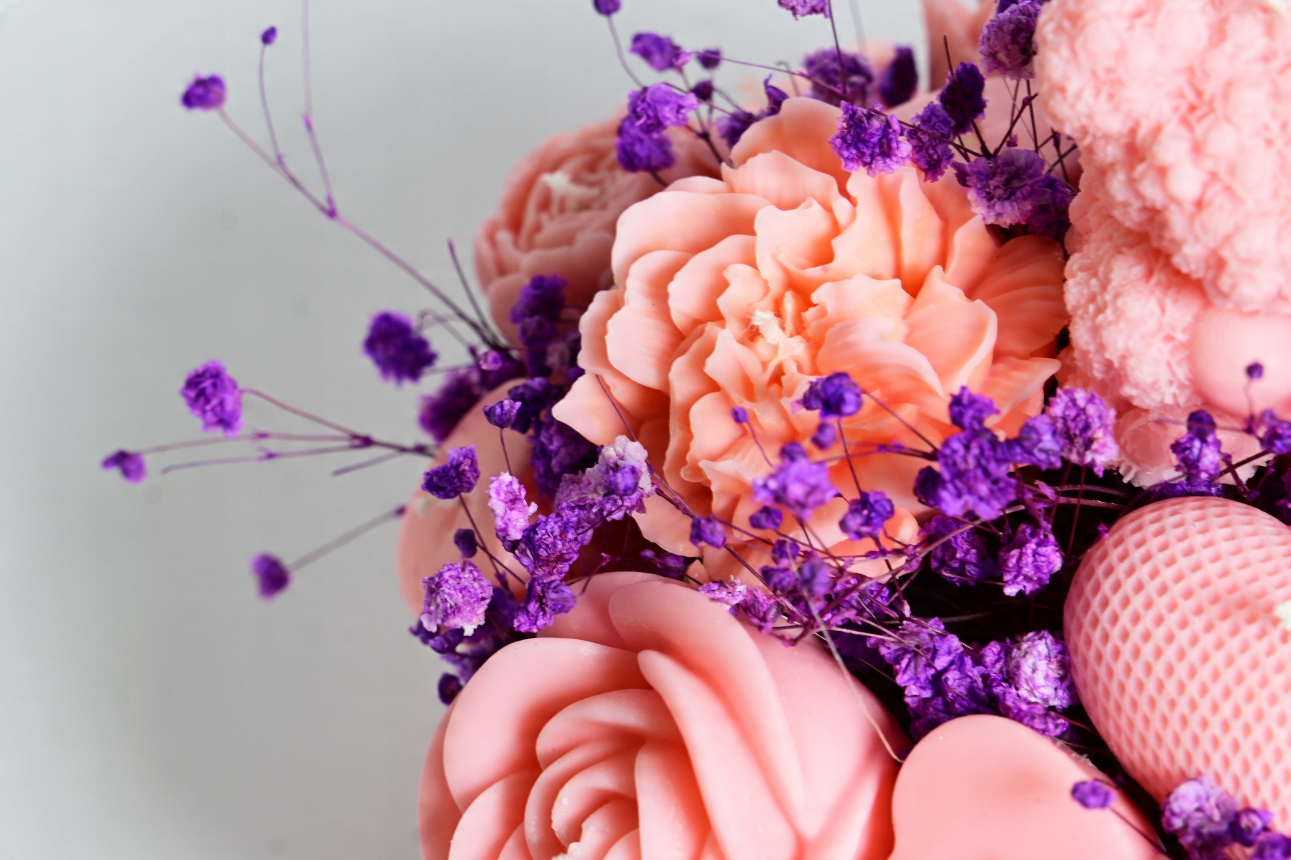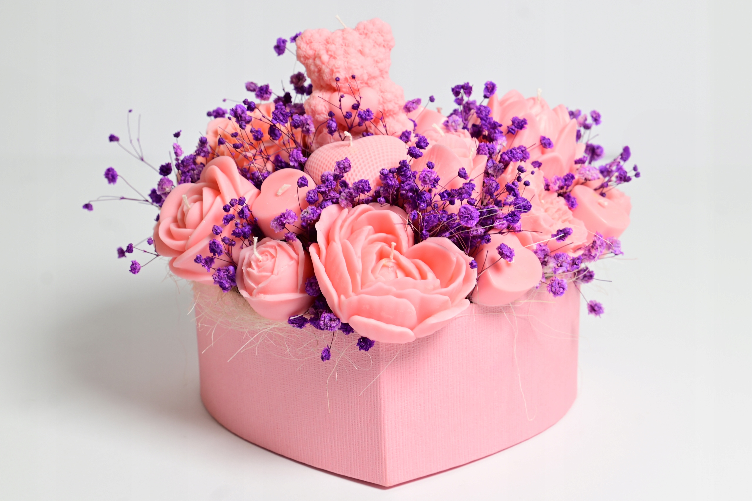 Цветочная коробка соевые свечи - идеальный подарок на День святого Валентина розовый/ фиолетовый