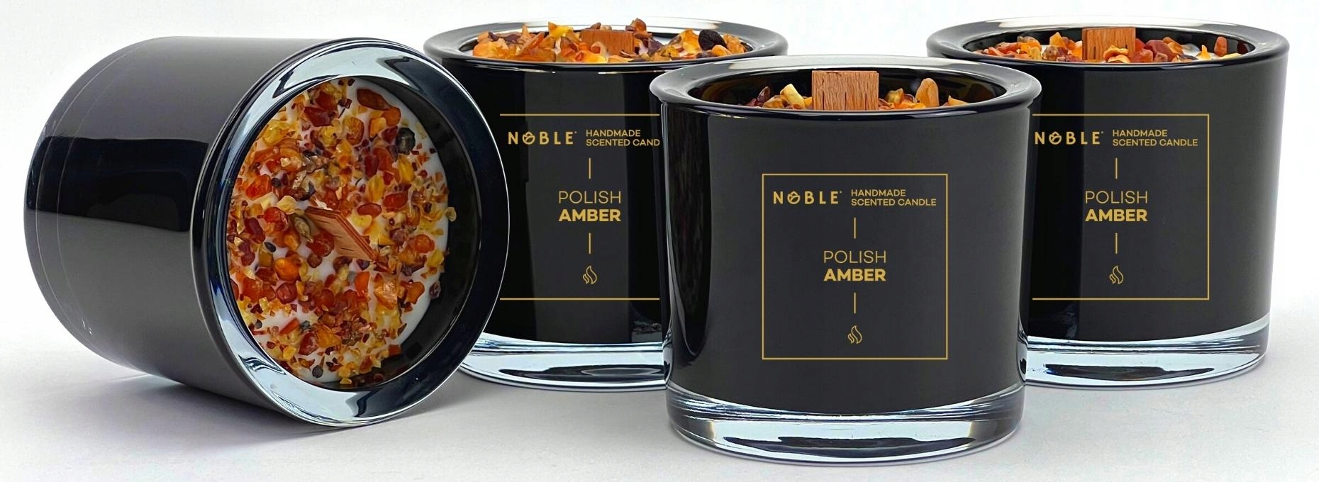 Воск с ароматом сои содержит частицы настоящего янтаря из Гданьского залива. Композиция натуральных эфирных масел с ароматом янтаря. Теплый, восточный и чувственный аромат, завершающийся нотами бергамота и апельсина. Парфюмерная композиция имеет восточный аромат на основе сандала. Элегантный и сильный аромат, как всегда, с максимальной интенсивностью от NOBLE.
