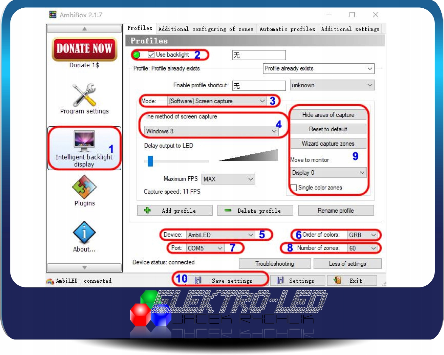 Основное назначение контроллера – управление с помощью приложения AmbiBox подсветкой монитора компьютера или телевизора. на который мы можем установить это приложение.