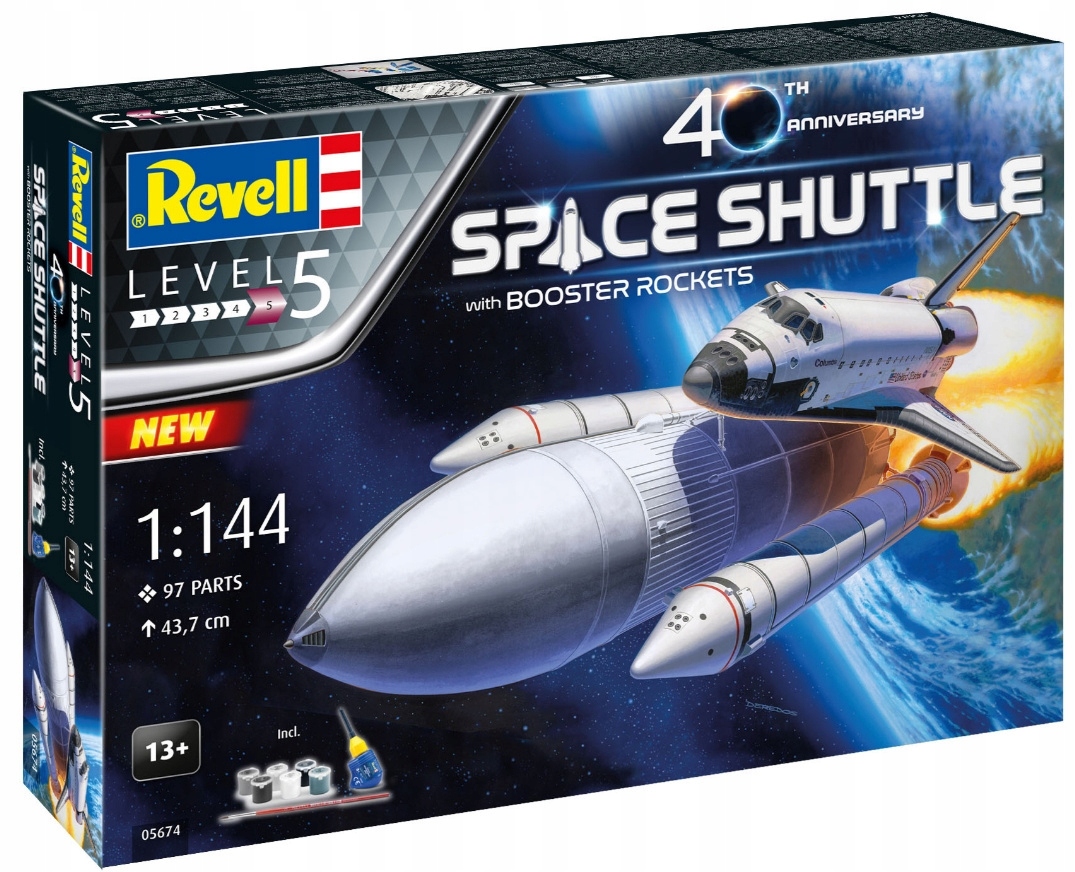 Space ulttle & Booster Rockets - Американский паромный паром, адаптированный для нескольких поездок на орбиту. (Ранее такое путешествие было совершено Колумбией и претендентом). > Рекомендуемые цвета краски: 32105, 32109, 32117, 32157, 32178, 32179, 32185, 32190, 32191, 32199, 32301, 32302, 32371, 32382. 05674 Производство: Revell Szerokoć: 165 мм Wysokoć: 437 мм Skala: 1: 144 Количество элементов: 97 Инструкции: Да Возрастная группа: 12+