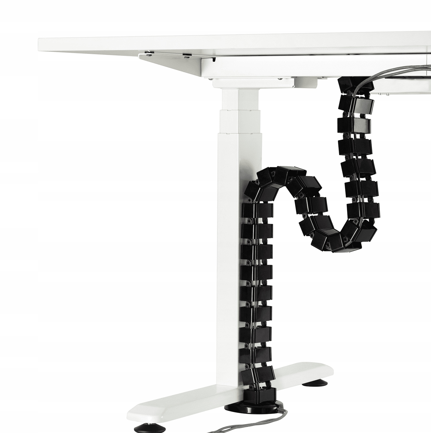Кабельный органайзер СПК-180 имеет возможность сгибания. Вы можете подобрать его к различным типам столов. Также для столов с регулируемой высотой. Все, что вам нужно сделать, это прикрепить его к столешнице с помощью шурупов. Органайзер будет регулировать вместе с ним и его высоту, изгибая или выпрямляя. Поэтому это идеальное решение для использования с электрическими столами.