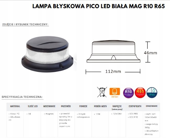 СИГНАЛЬНАЯ ЛАМПА PICO БЕЛАЯ 18x СВЕТОДИОДНЫЙ СТРОБОЧНЫЙ СТАКАН С МАГНИТОМ