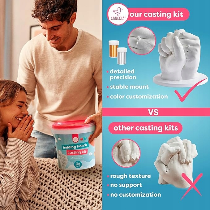 набор для литья рук Наш набор предлагает простую и интуитивно понятную процедуру, благодаря которой вы можете сделать прекрасный кастинг своего партнера, родителей или друзей. Это уникальный подарок, который идеально подходит для годовщины, Дня святого Валентина, день рождения или свадьбы, который будет рад близко к вам. Кроме того, инструкция по шагам позволит вам легко сделать отличный кастинг. Вы можете положить его на полку, повесить его на стену в качестве украшения или подарить семье как уникальный подарок, который будет восхищать всеми. > ✅ Установите для литья рук
