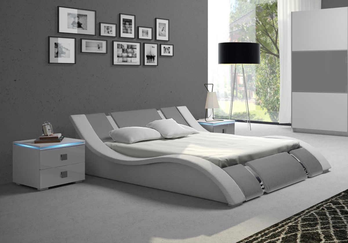 Кровать с мягкой обивкой РУБИН. Кровать из последней коллекции мягкой мебели. Ее округлая форма делает мебель оптически больше, а форма «волна» обеспечивает очень комфортный отдых. Он был сделан с вниманием к каждой детали, из материалов высочайшего качества. Кровать из экокожи белого и серого цвета. Имеет усиленный и профилированный деревянный каркас, что гарантирует его долговечность. Кроме того, здесь есть пружинные машинки и функциональный контейнер для подстилки. Данная модель кровати позволит Вам комфортно отдохнуть и в то же время придаст помещению элегантный дизайн.