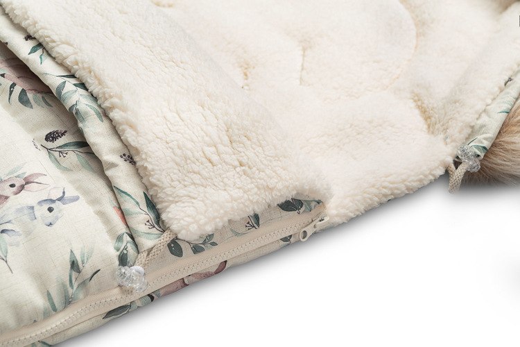 Спальный мешок Cortina идеально подходит для зимних прогулок. Внутренняя часть выполнена из теплого и мягкого флиса, а большое количество детского наполнителя защитит ребенка от холода. Внешний слой представляет собой водонепроницаемую полиэфирную ткань, похожую на лен, что придает ей характерный вид. Его можно использовать для прогулок в колясках, колясках и санках. Имеет отверстия для ремней и молнию во всю длину. Для удобства искусственный мех на капюшоне отстегивается.