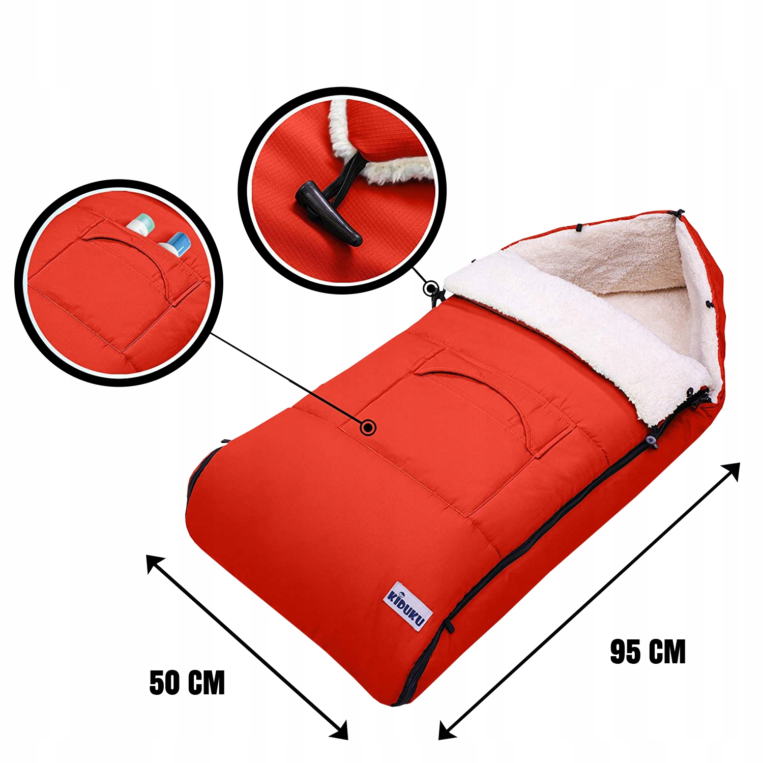 Спальный мешок имеет открывающуюся молнию + специальные крючки, позволяющие свернуть спальник, когда во время прогулки немного потеплеет, отверстия для 3-точечного ремня безопасности и резиновую заднюю подкладку, благодаря чему Спальник лучше прилегает к коляске. Вверху спальника есть молния, когда ребенок уже в коляске, ему может понадобиться больше места, просто расстегните молнию и у вас есть спальник на следующий сезон!