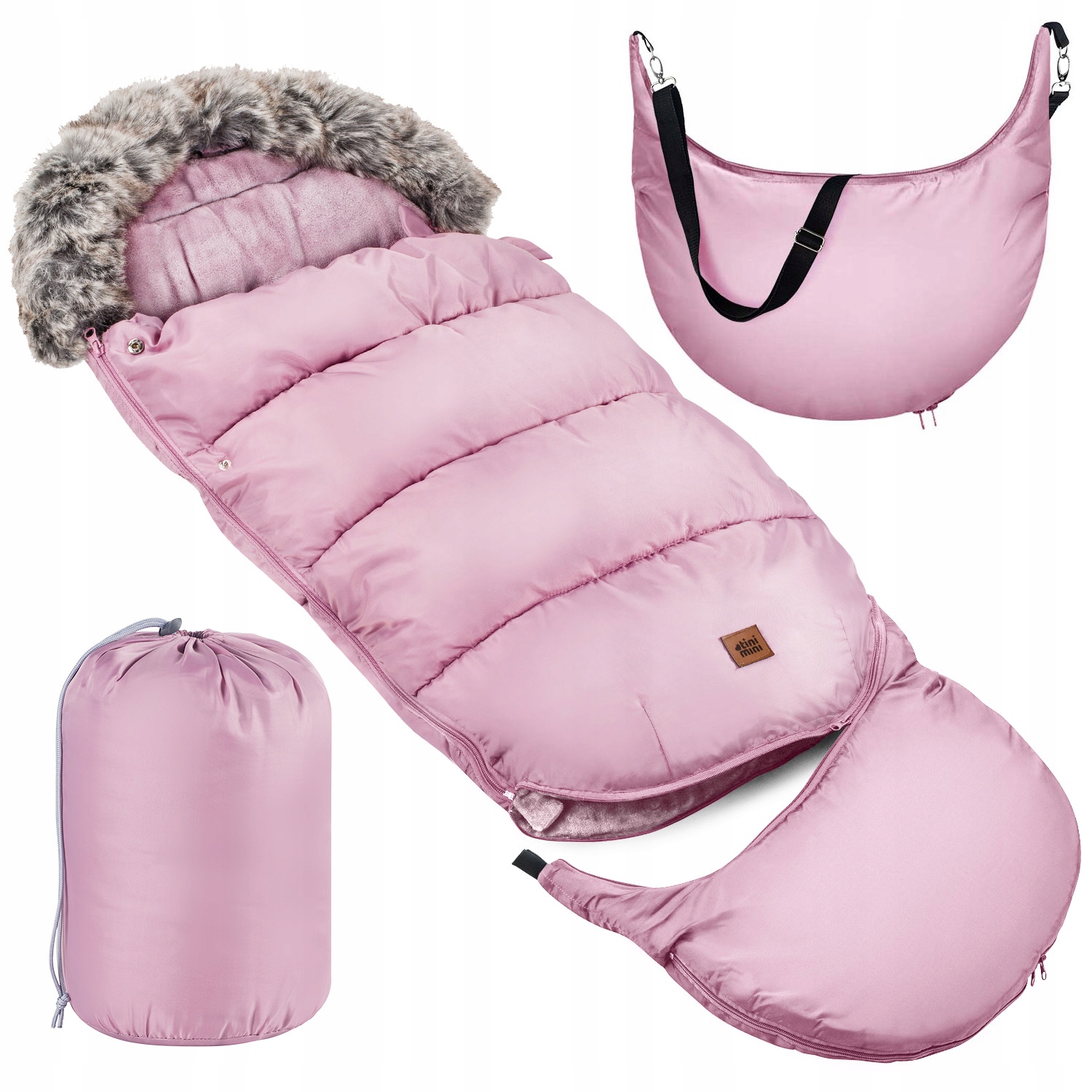 РЕГУЛИРУЕМЫЙ СПАЛЬНИК ДЛЯ ГОНДОЛЬНОЙ КОЛЯСКИ 110см С МЕХОМ РОЗОВЫЙ